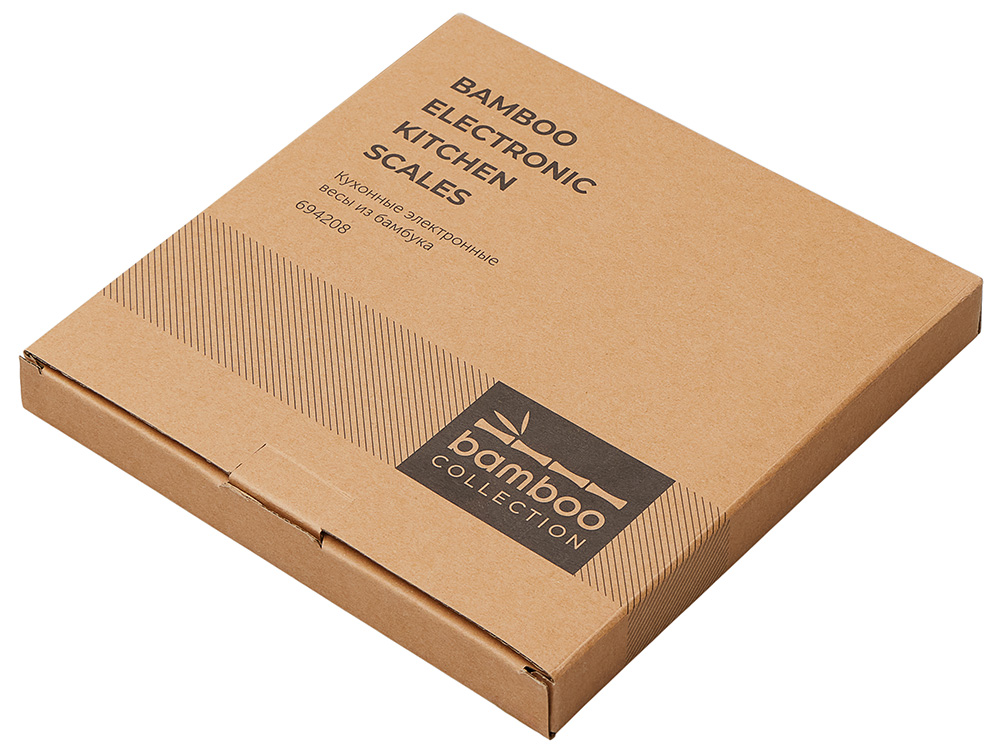 Кухонные весы – незаменимый аксессуар, который пригодится тем, кому часто приходится соблюдать точные пропорции. Платформа изготовлена из натурального бамбука. Этот материал отлично отталкивает влагу и предотвращает распространение бактерий. Лаконичный внешний вид позволяет весам вписываться в любой интерьер.