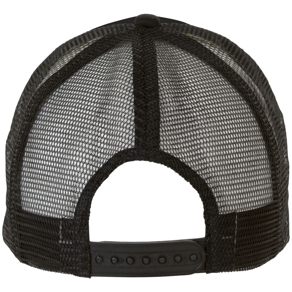 Бейсболка с 5 клиньями из сетки. Поролон в переднем клине (5 мм) и козырьке (3 мм). Регулируемая пластиковая застежка.