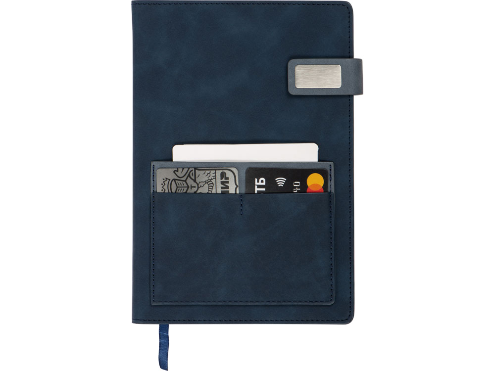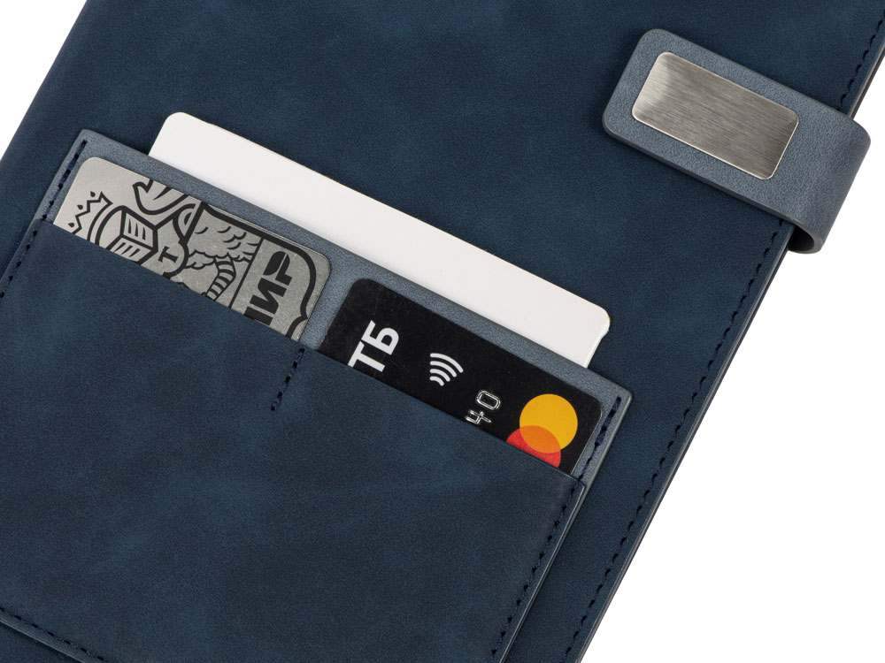 Бизнес-блокнот Freya в твердой обложке позволит вам не только навести порядок в вашем расписании и делах, но и не даст потерять важные визитки — для них прямо на обложке предусмотрен отдельный карман. Карман имеет три отделения: два под размер визиток или банковских карт и одно большего размера. Клапан позволяет сохранить блокнот в отличном состоянии в течение долгого времени даже при ежедневном использовании, не сминая листы.