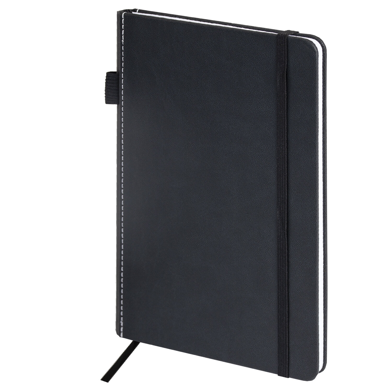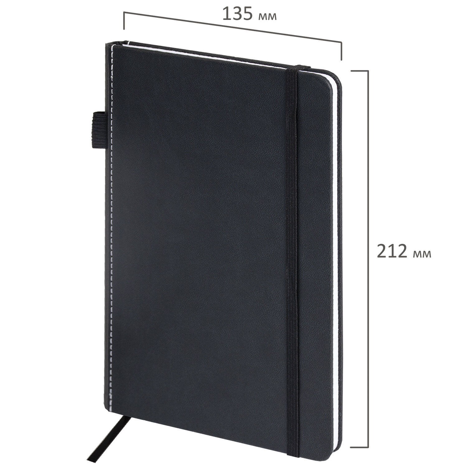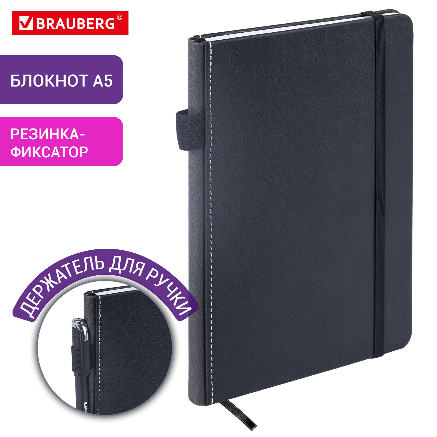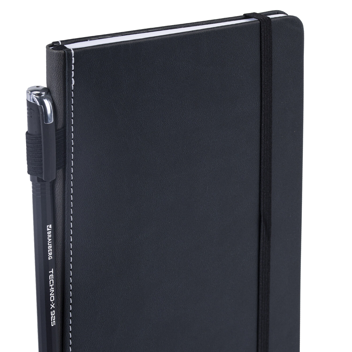 Блокнот А5 135×212 мм BRAUBERG «Edge», под кожу, резинка, держатель, 80 л., клетка, черный, 117145