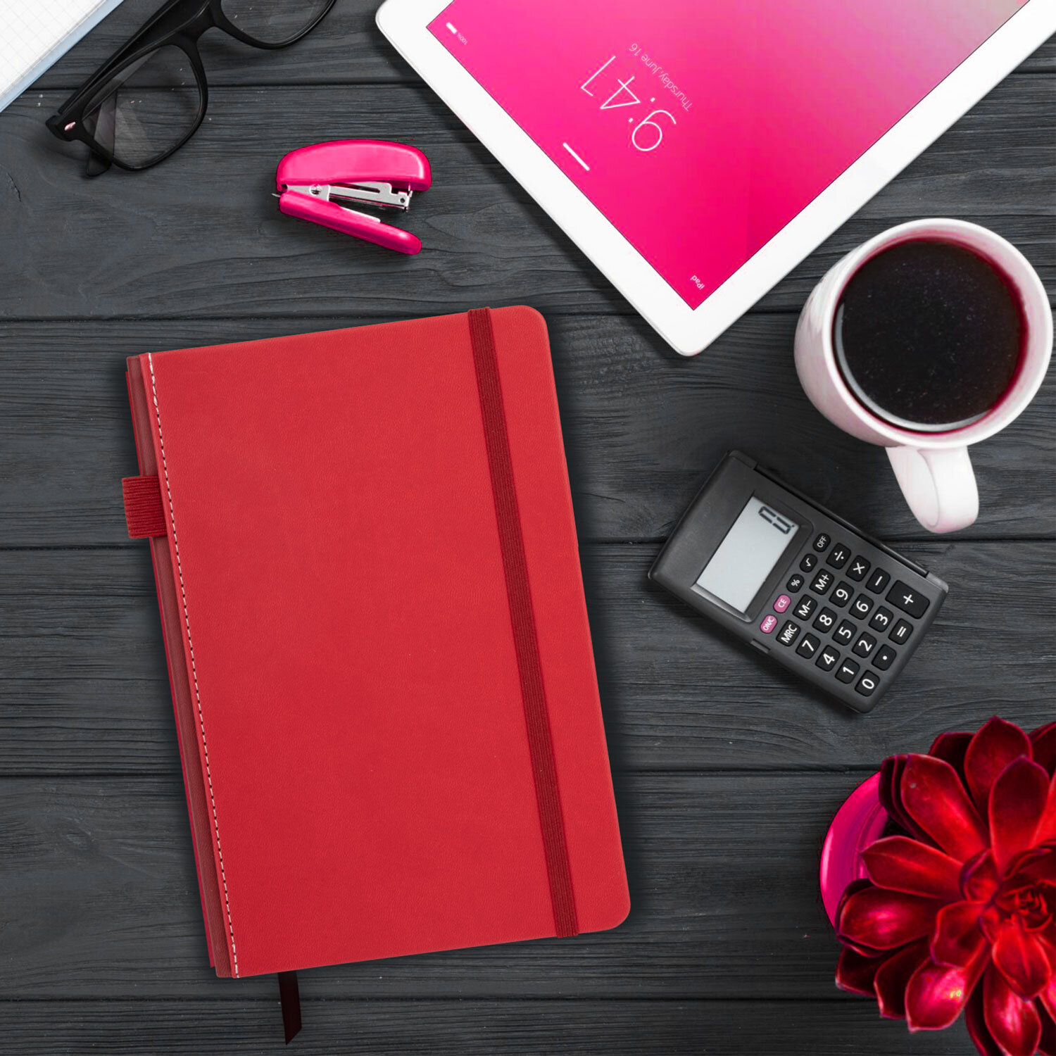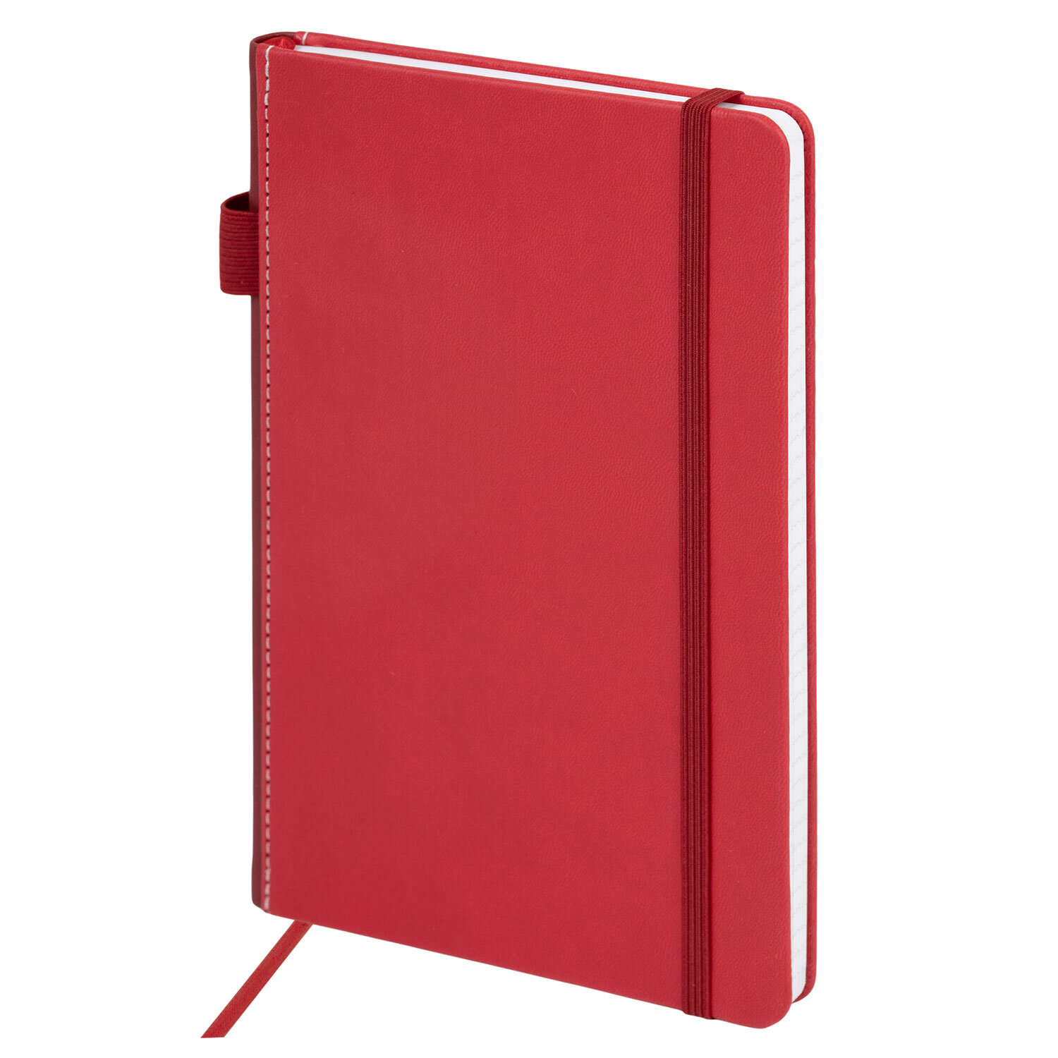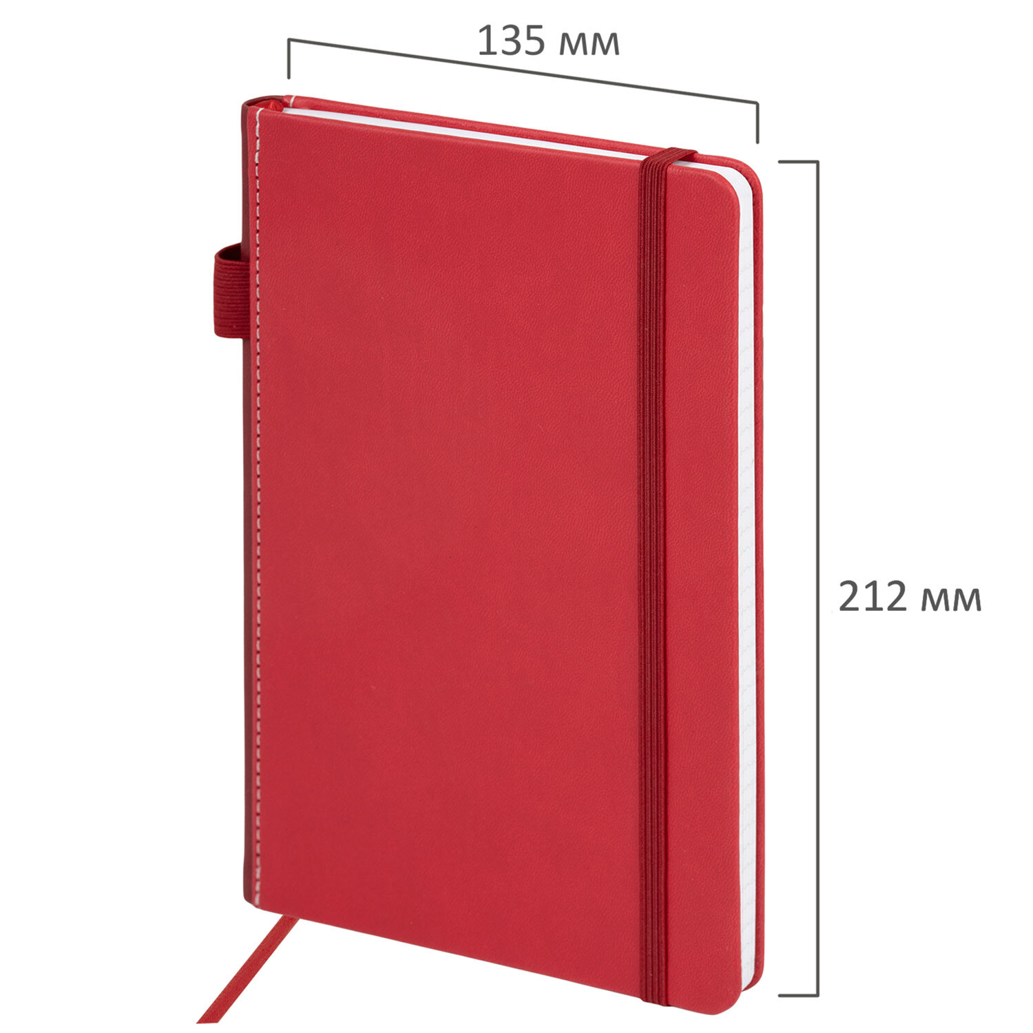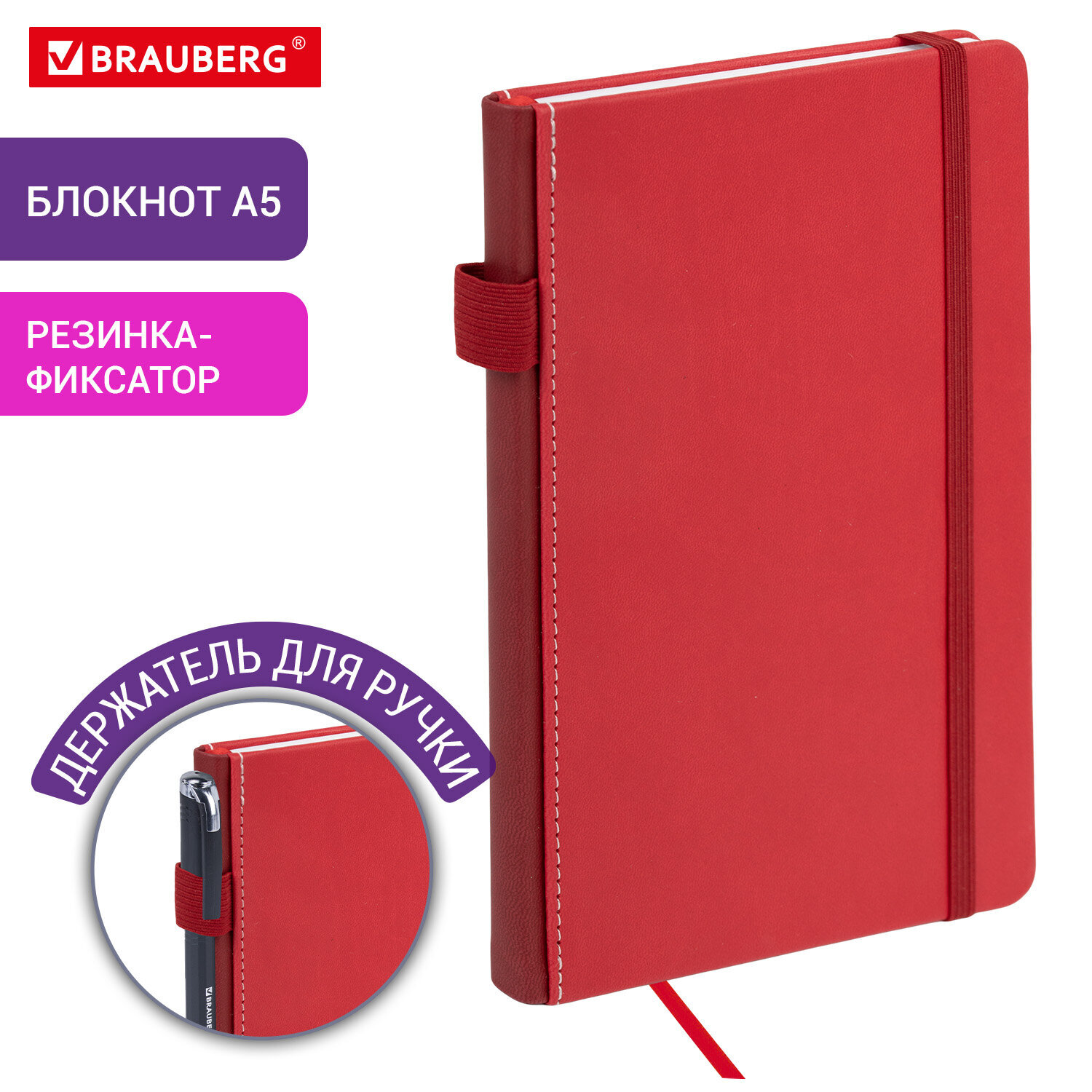 Блокнот А5 135×212 мм BRAUBERG «Edge», под кожу, резинка, держатель, 80 л., клетка, красный, 117147