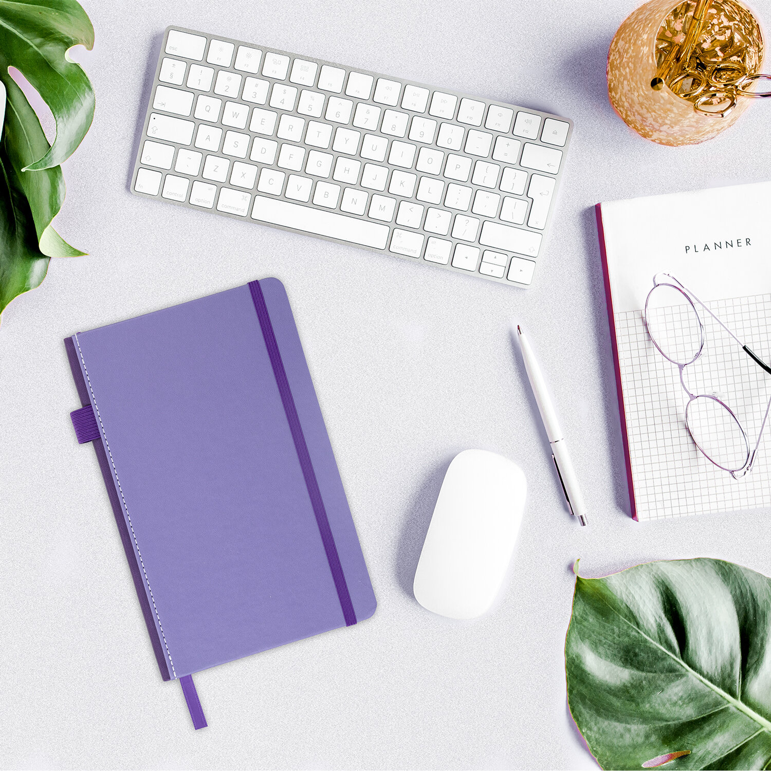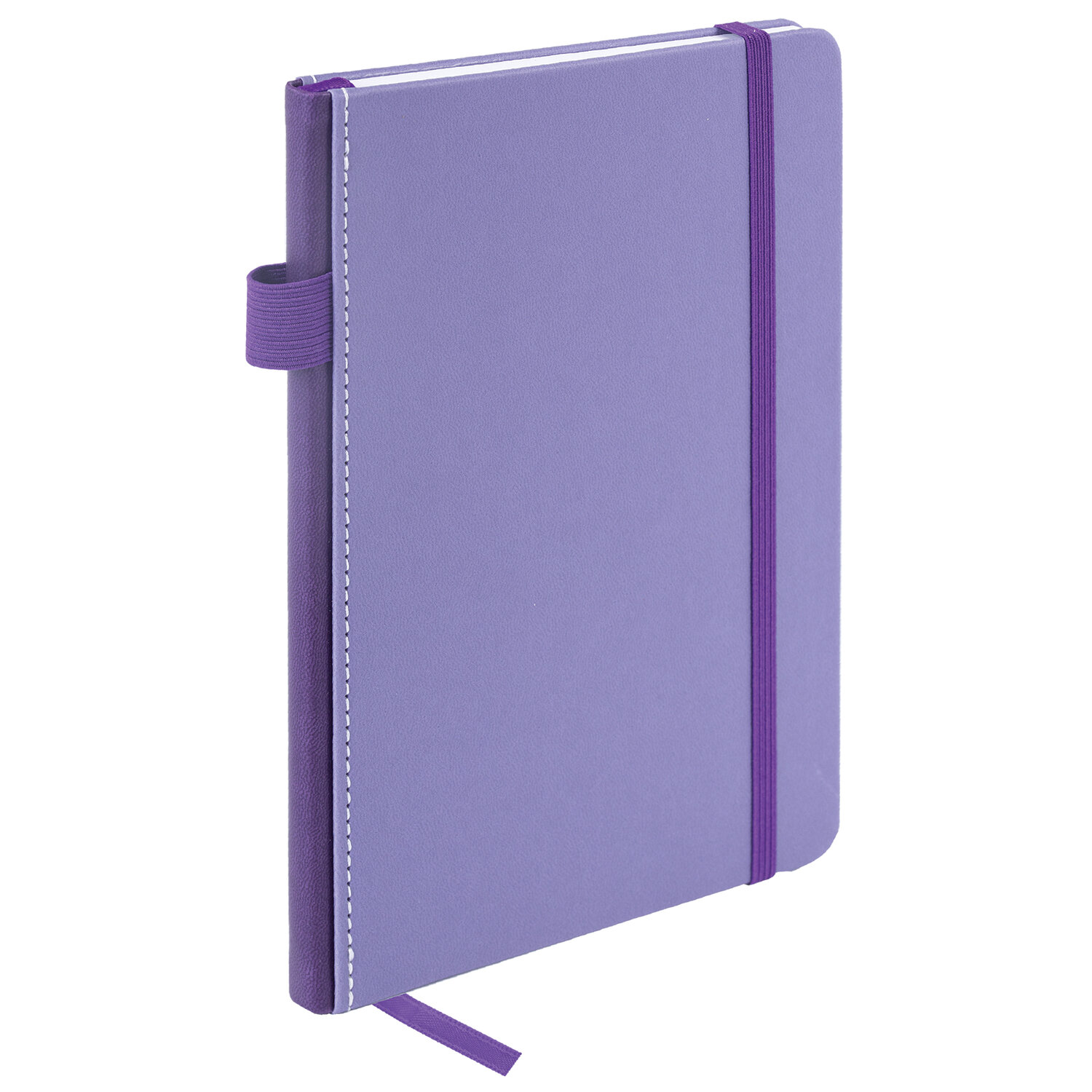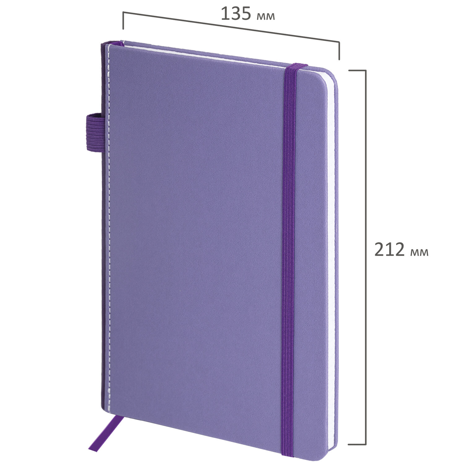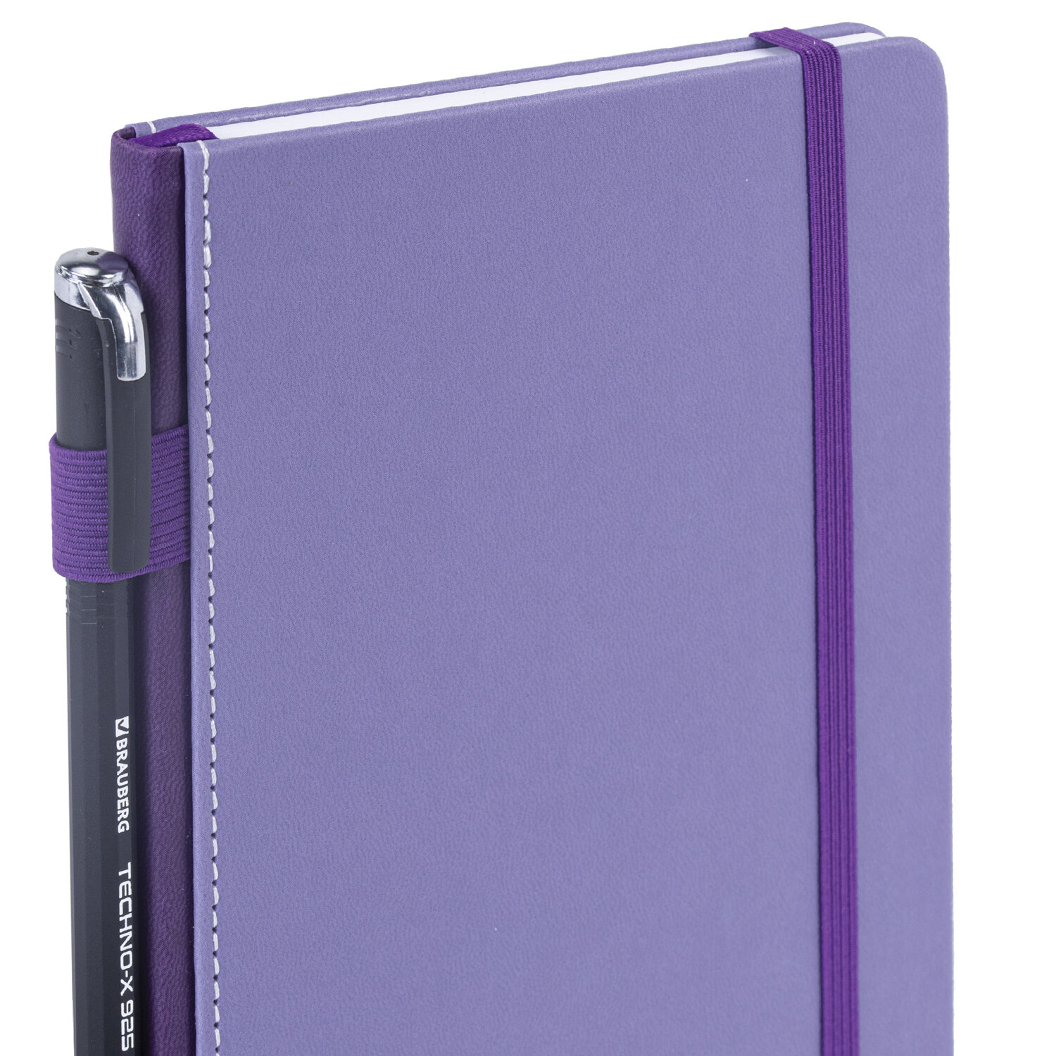 Блокнот А5 135×212 мм BRAUBERG «Edge», под кожу, резинка, держатель, 80 л., клетка, сиреневый, 117150