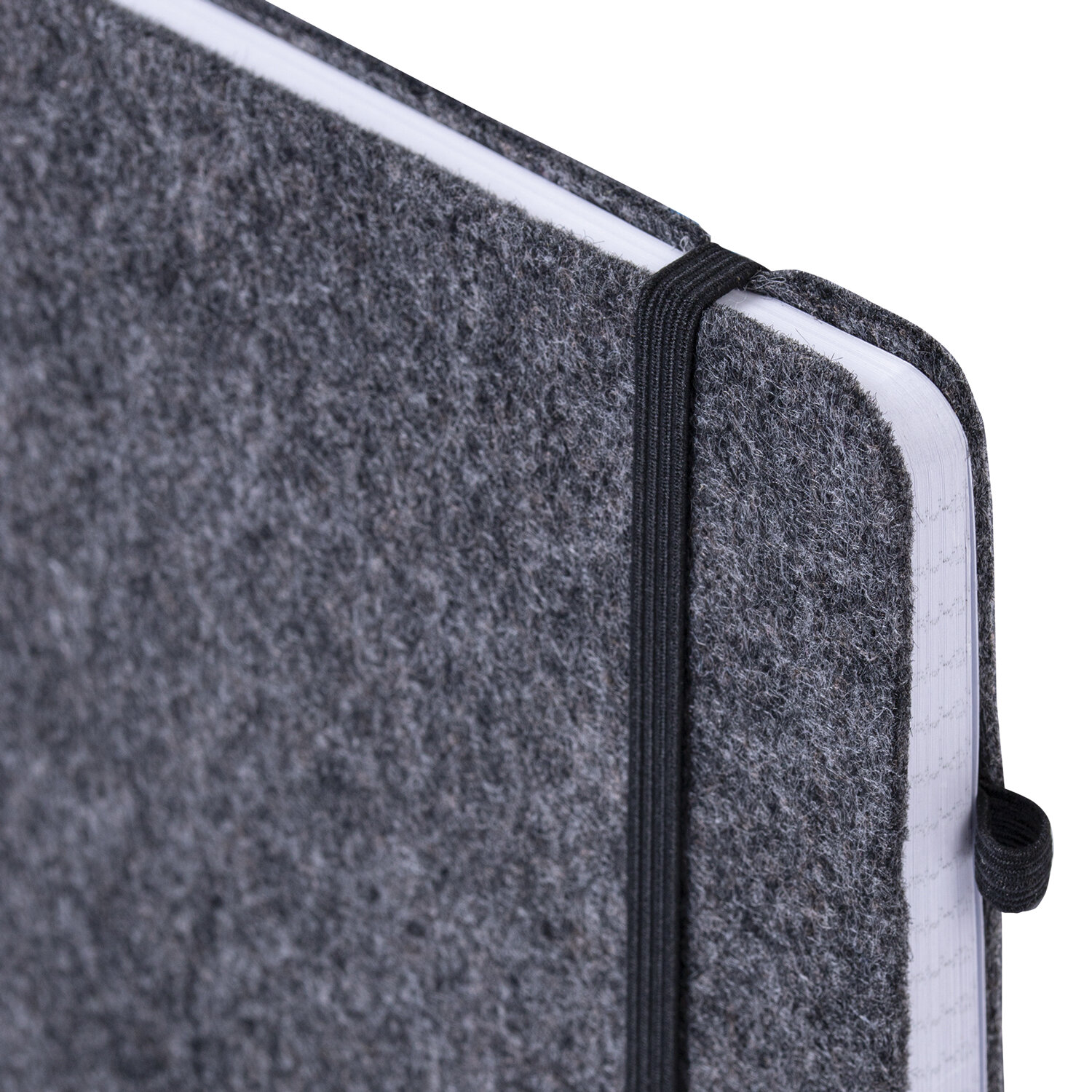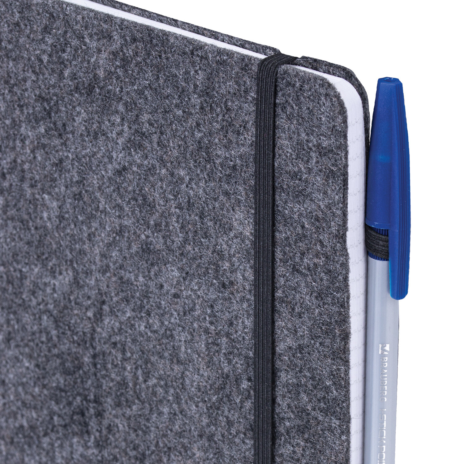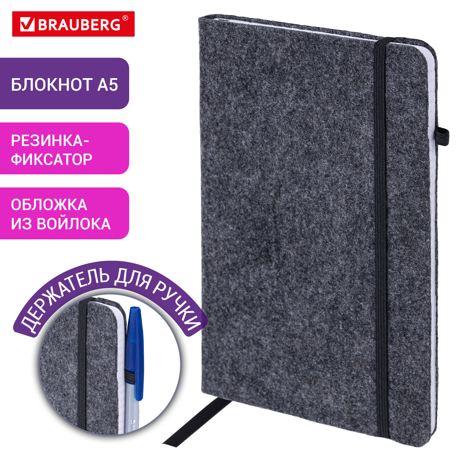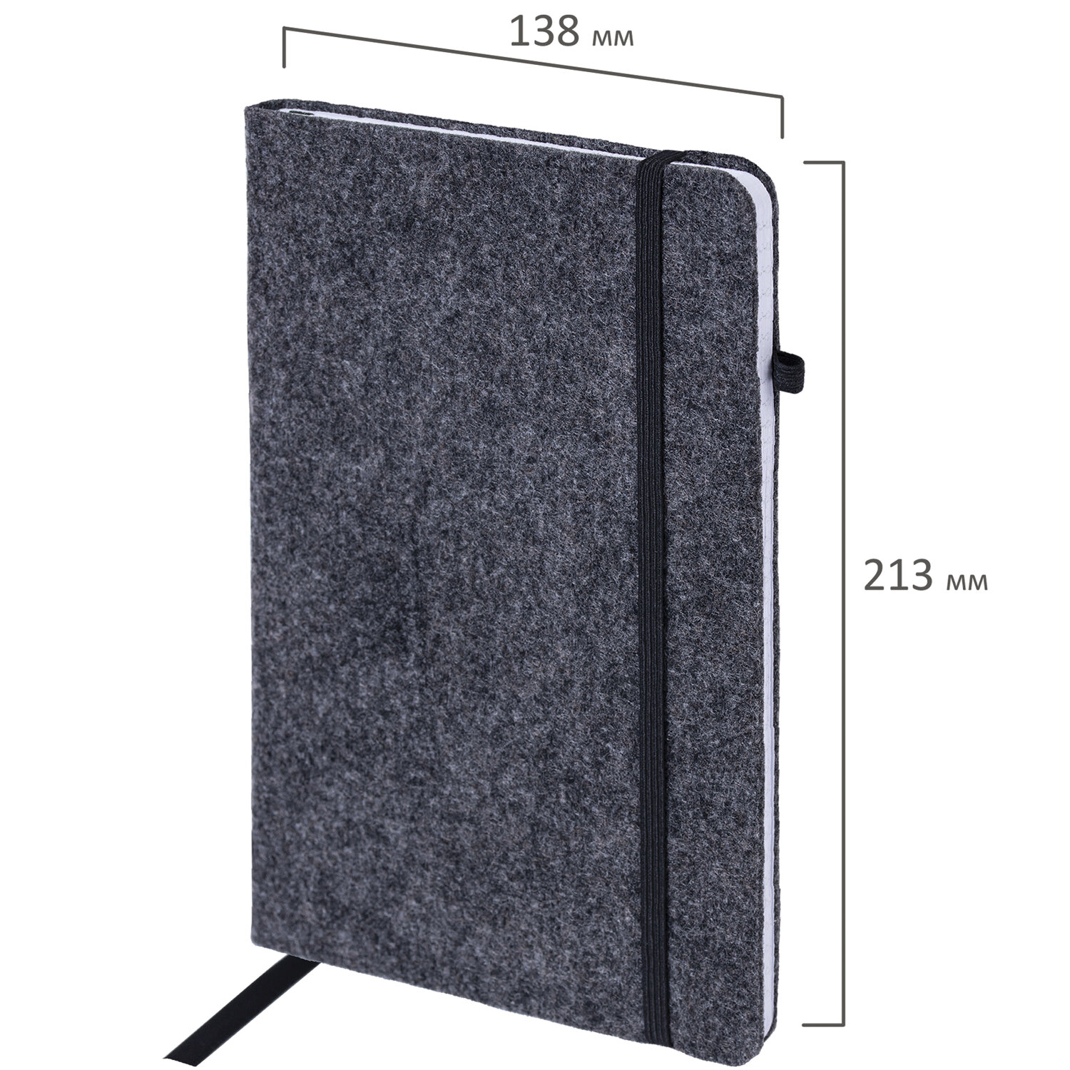 Блокнот А5 138×213 мм BRAUBERG «Voylok», войлок, резинка, держатель, 80 л., клетка, черный, 117134