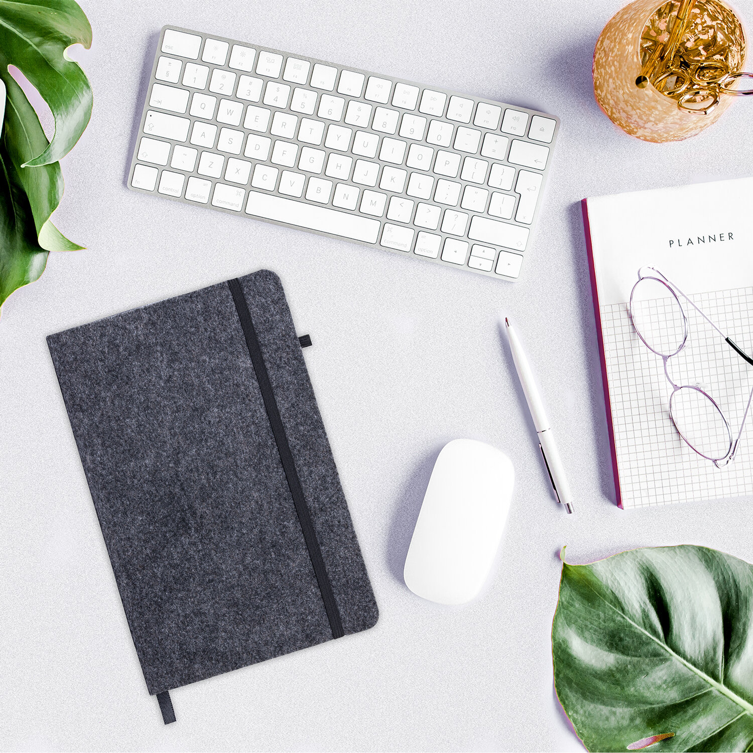Мягкая обложка изготовлена из войлочного материала, очень тактильного на ощупь. Имеет закругленные уголки. 80 листов позволят зафиксировать большой объем информации. Линовка блока в клетку (5х5 мм) дает возможность аккуратно заполнить цифровые значения, а также нанести чертежные зарисовки. Внутренний блок выполнен из офсета белого цвета плотностью 70 г/м2. Снабжен резинкой-фиксатором, благодаря чему блокнот не откроется в сумочке или портфеле, и листы не помнутся. Дополнением является закладка-ляссе, с помощью которой при необходимости можно быстро открыть нужную страницу, а также держатель для ручки, повышающий функциональность блокнота. Формат А5 (138х213 мм) позволит владельцу поместить его в кейс или сумку малых габаритов.