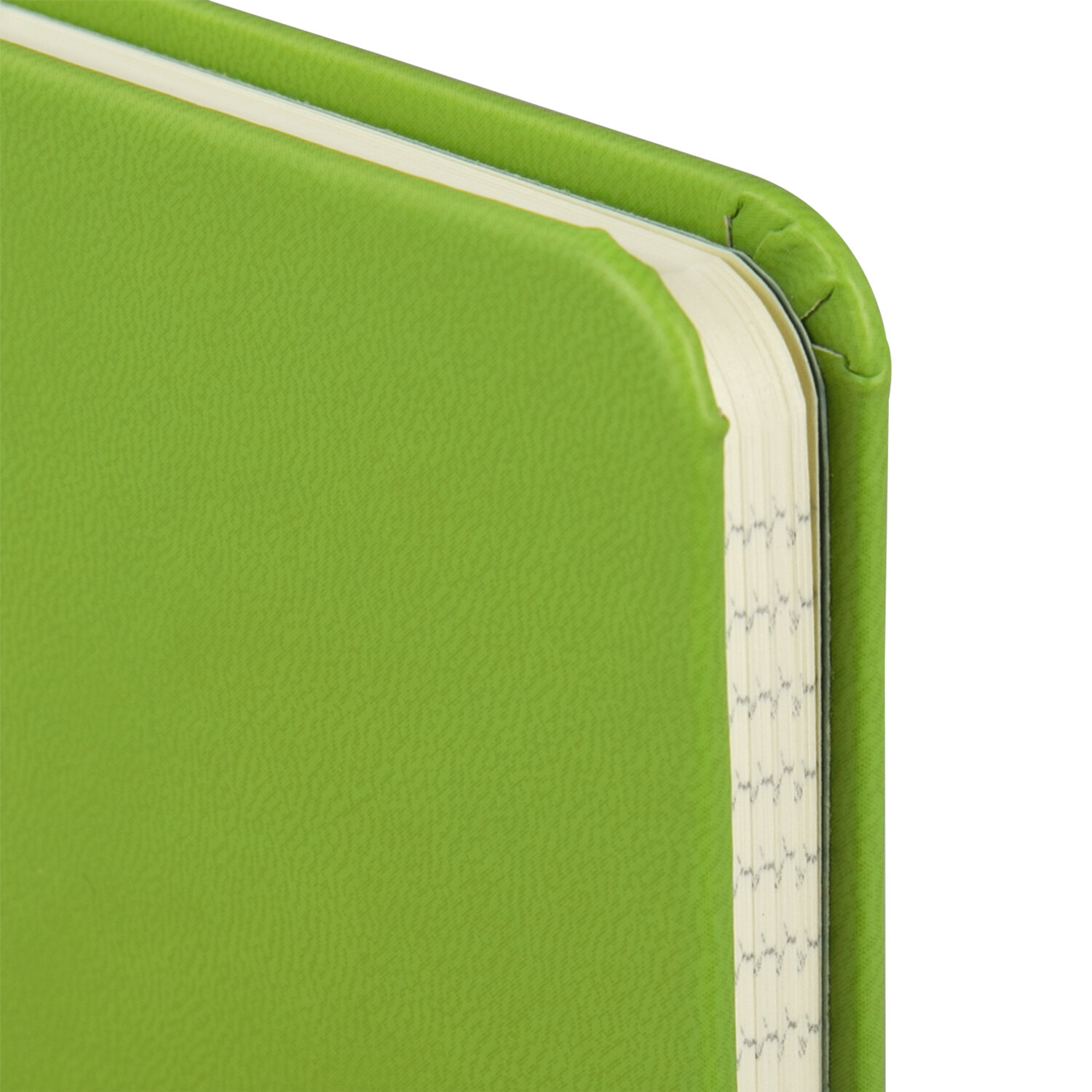 Твердая обложка стилизована под кожу. Имеет закругленные уголки. Подходит для горячего тиснения. 80 листов позволят зафиксировать большой объем информации. Линовка блока в клетку (5х5 мм) дает возможность аккуратно заполнить цифровые значения, а также нанести чертежные зарисовки. Внутренний блок выполнен из офсета тонированного цвета плотностью 70 г/м2 и крепится к обложке с помощью книжного переплета. Снабжен резинкой-фиксатором, благодаря чему блокнот не откроется в сумочке или портфеле и листы не помнутся. Дополнением является закладка-ляссе, с помощью которой при необходимости можно быстро открыть нужную страницу. Формат блокнота А5 (148х218 мм) позволит владельцу поместить его в кейс или сумку малых габаритов.