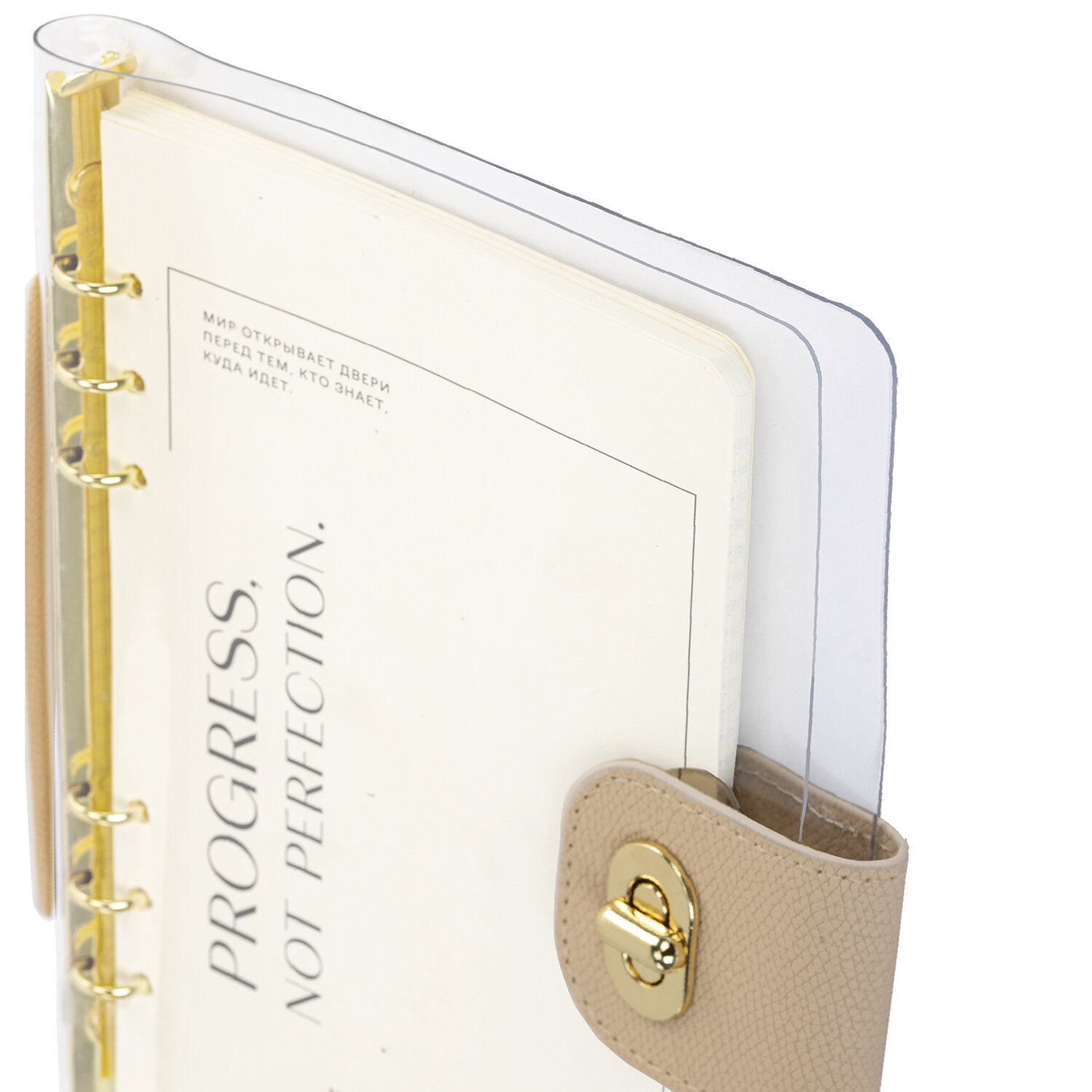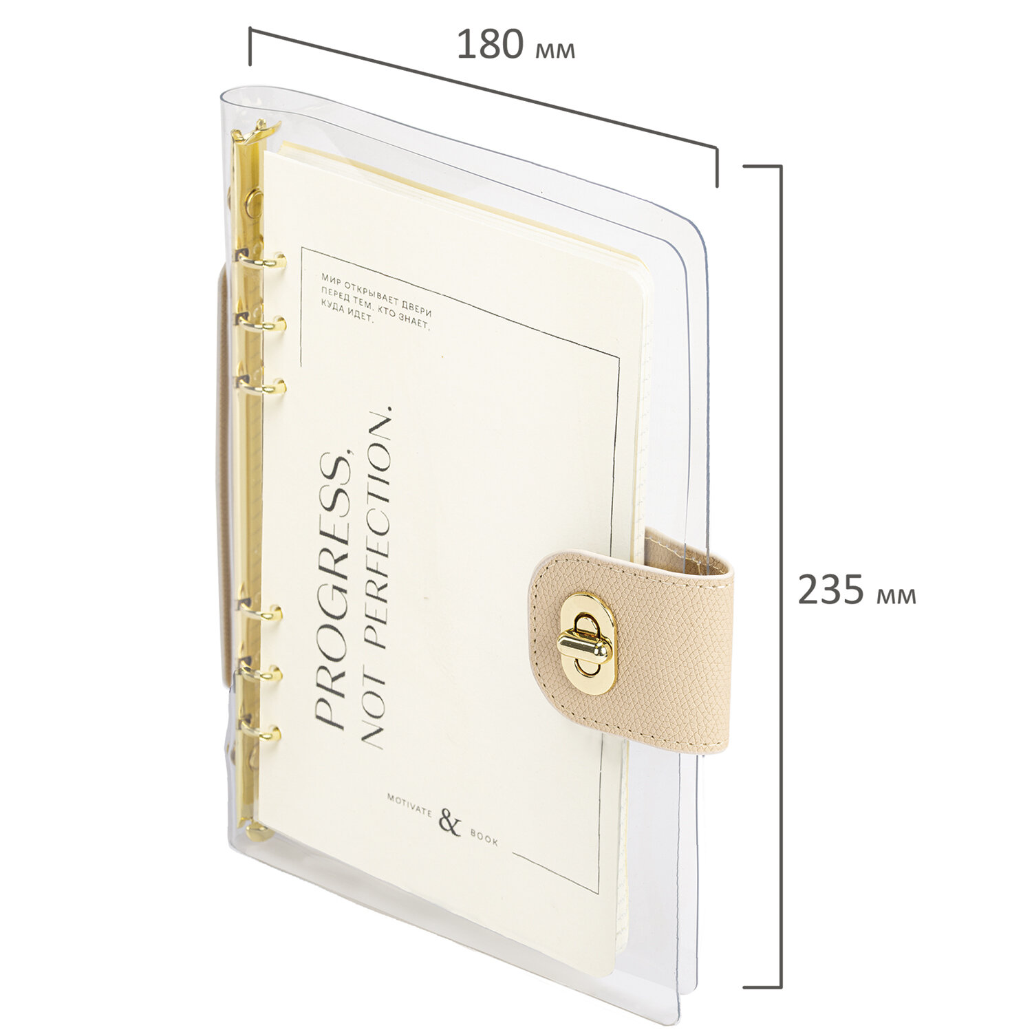 Блокнот А5 180×235 мм, BRAUBERG «Fabulous», гибкий, на кольцах, застежка, 80 л., бежевый, 116194