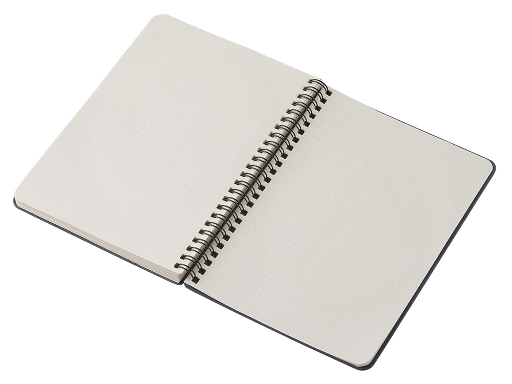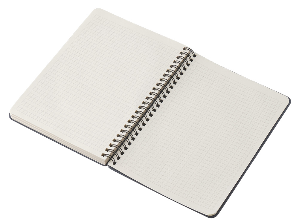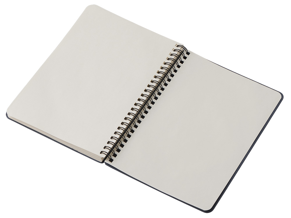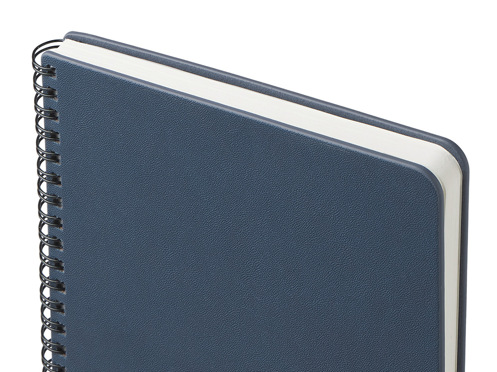 Форзац выполнен из мягкой эко-кожи под замшу, создавая премиальное ощущение при каждом открытии. Удобная спираль позволяет легко перелистывать страницы и раскрывать блокнот на 360°.