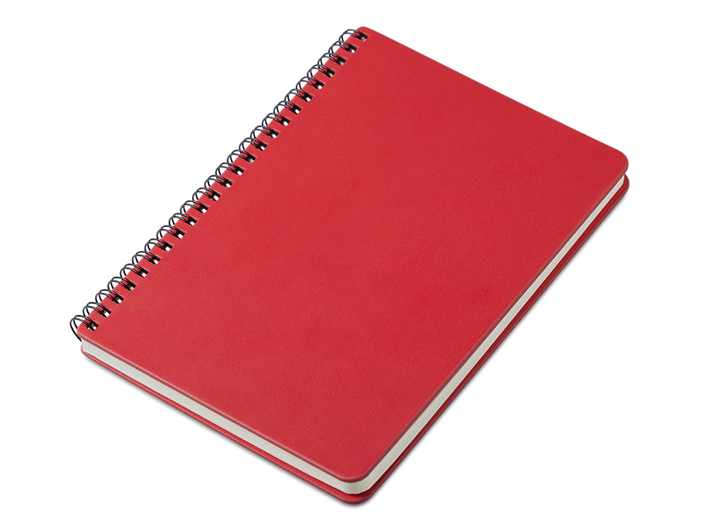 Стильный блокнот на спирали в твёрдой обложке из искусственной кожи.