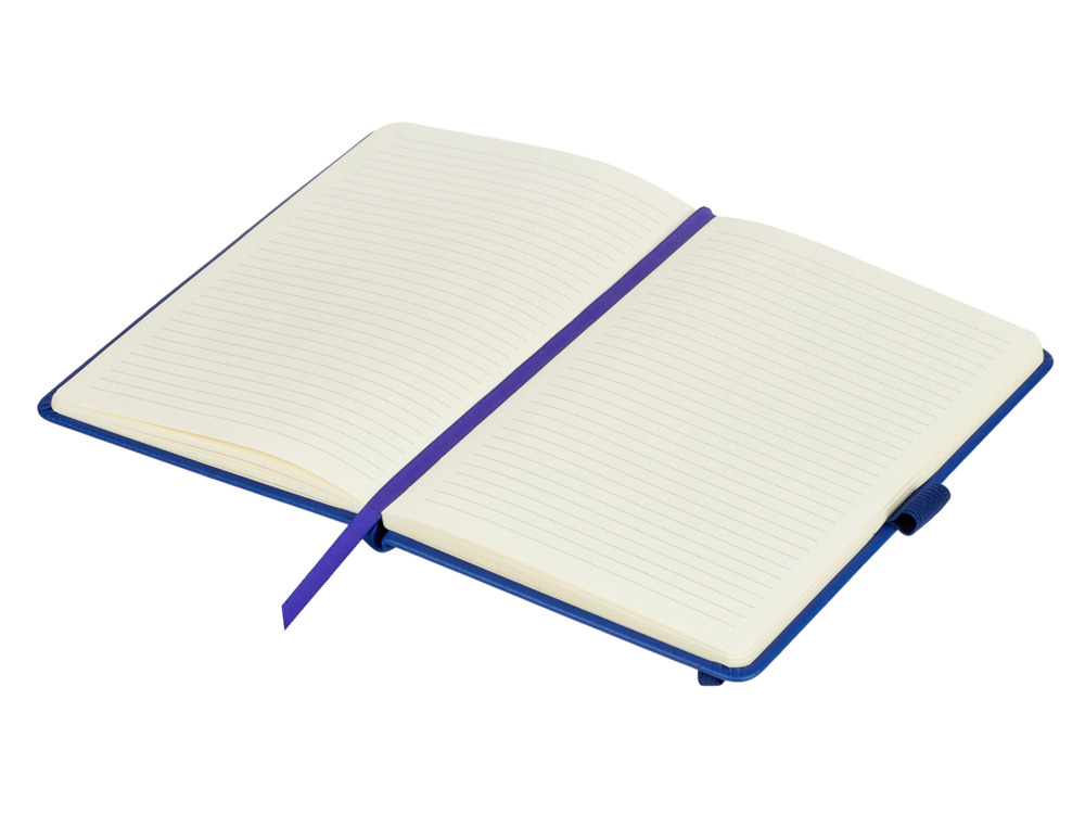 Блокнот в твердой обложке с закругленными углами представлен в широком ассортименте цветов. Внутри 80 листов кремового блока плотностью 70 г/м2 и ляссе в цвет обложки, которая упрощает навигацию по блокноту.