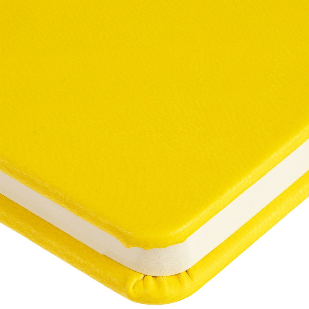 Твердая обложки из материала Latte, желтый, ляссе в цвет обложки.