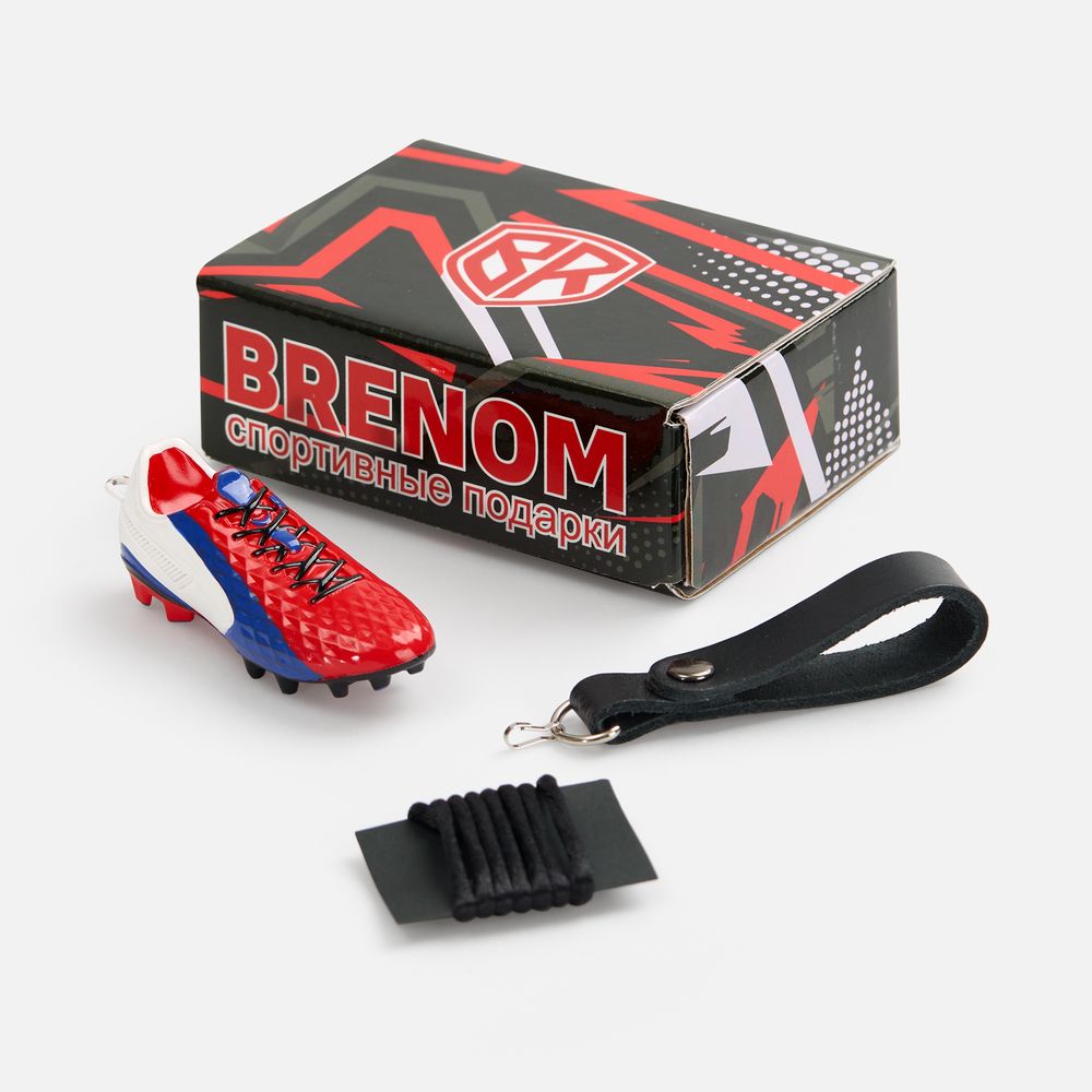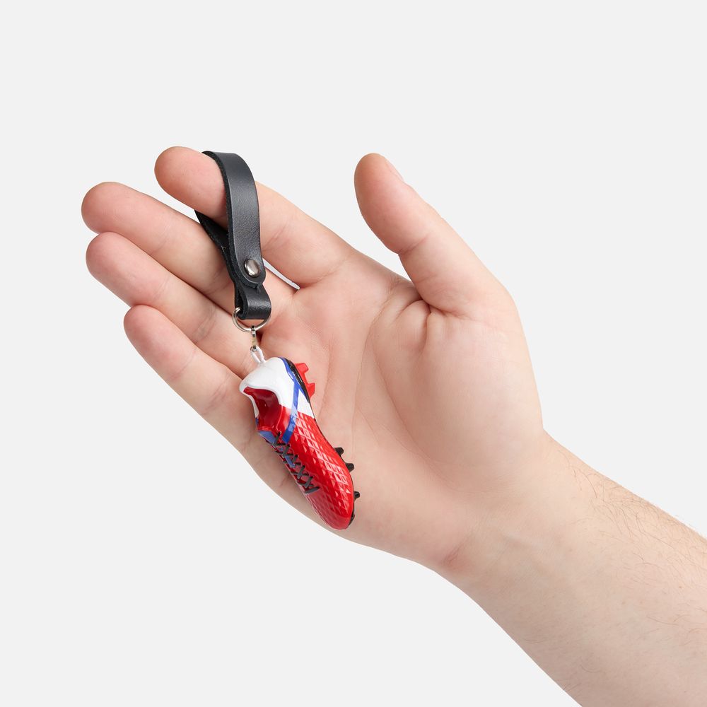 Брелок в форме футбольной бутсы станет отличным подарком для профессиональных спортсменов, любителей и болельщиков.