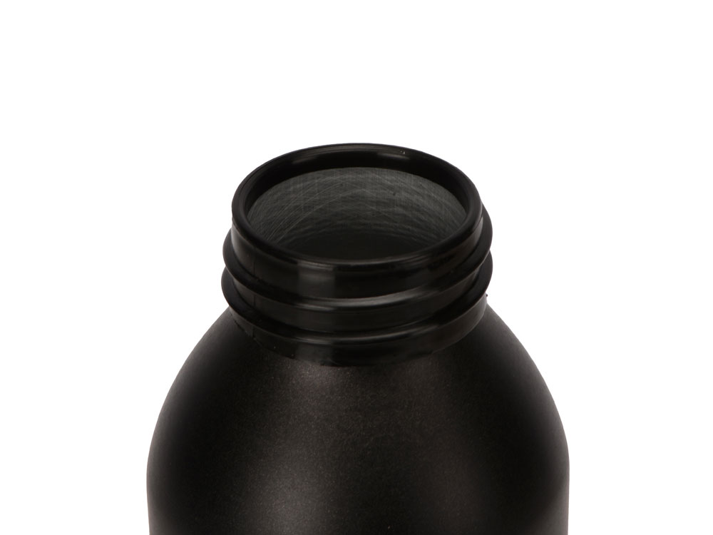 Бутылка для воды Joli выполнена из алюминия, что обеспечивает ей, при довольно солидном объеме (650 мл), сравнительно малый вес. Матовый корпус угольно-черного цвета создает интересный контраст с прозрачной крышкой яркого сочного оттенка, дополненной силиконовой петелькой в тон. Крышка плотно прилегает при закручивании, что обеспечивает Joli герметичность, а текстура покрытия корпуса не дает руке скользить при захвате.