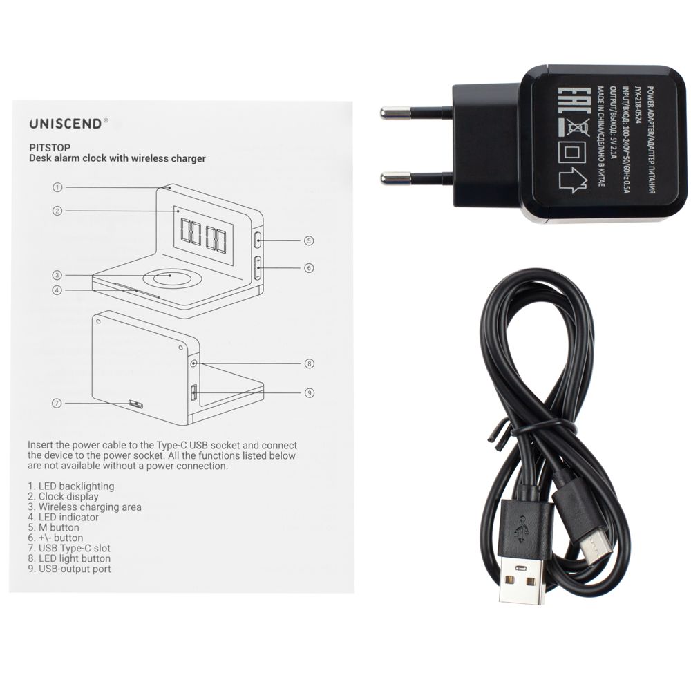 Часы настольные с беспроводным зарядным устройством Pitstop