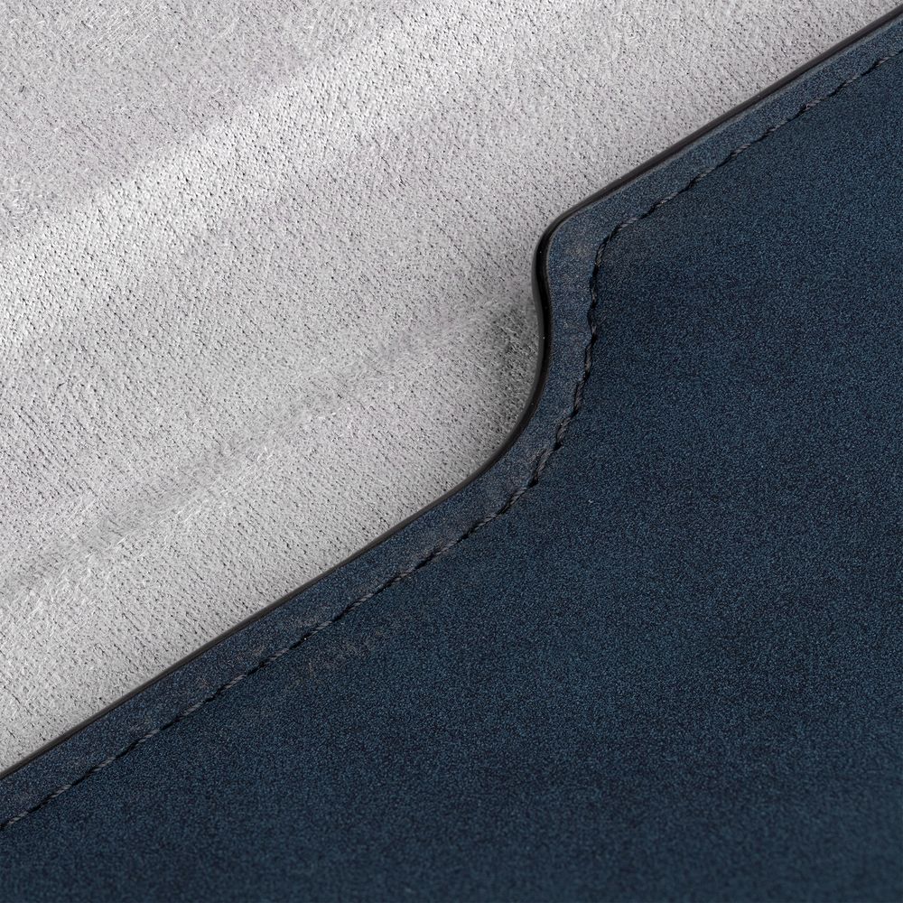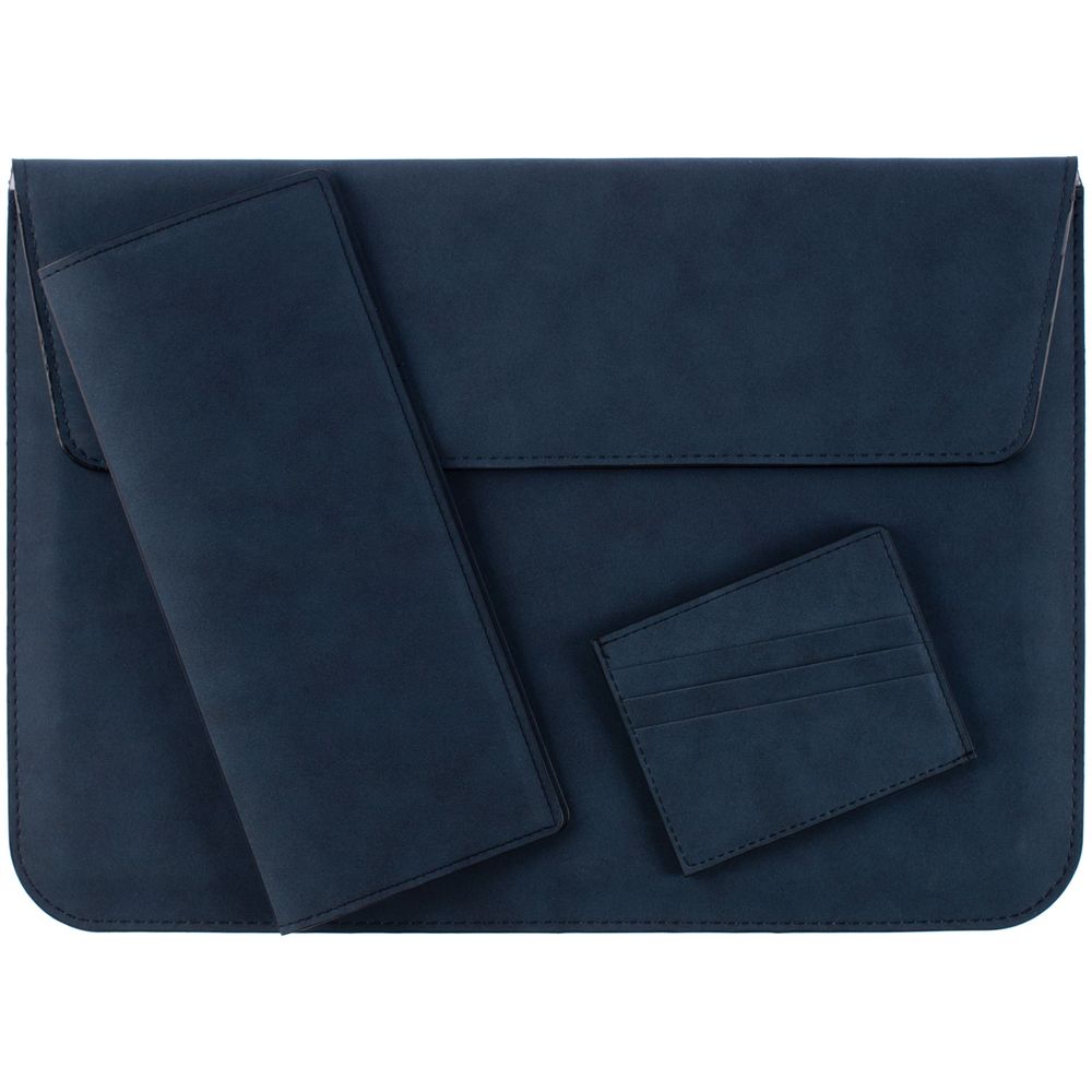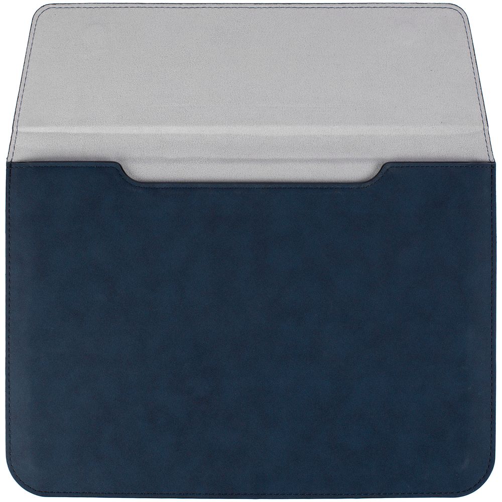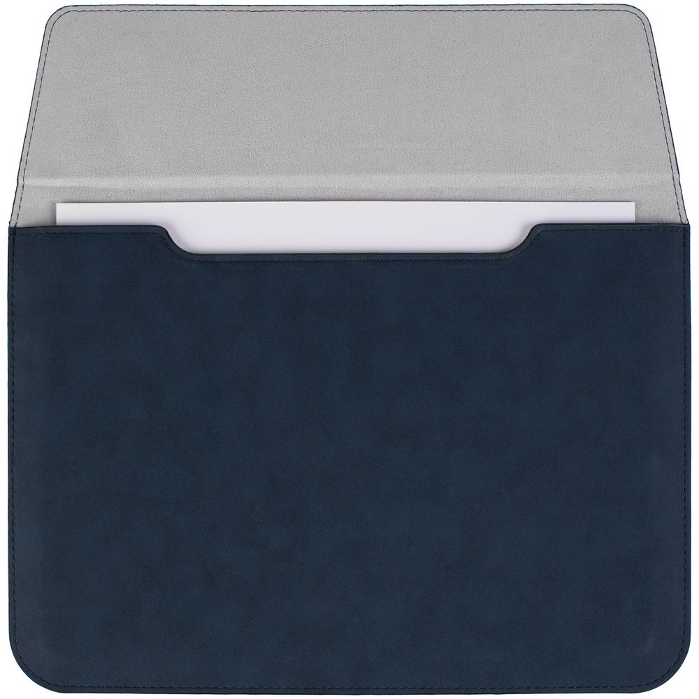 Чехол для ноутбука с диагональю до 13″, выполнен из материала Nubuck, темно-синий ХХ, внутри серый велюр.