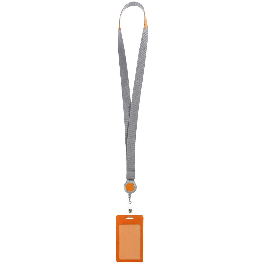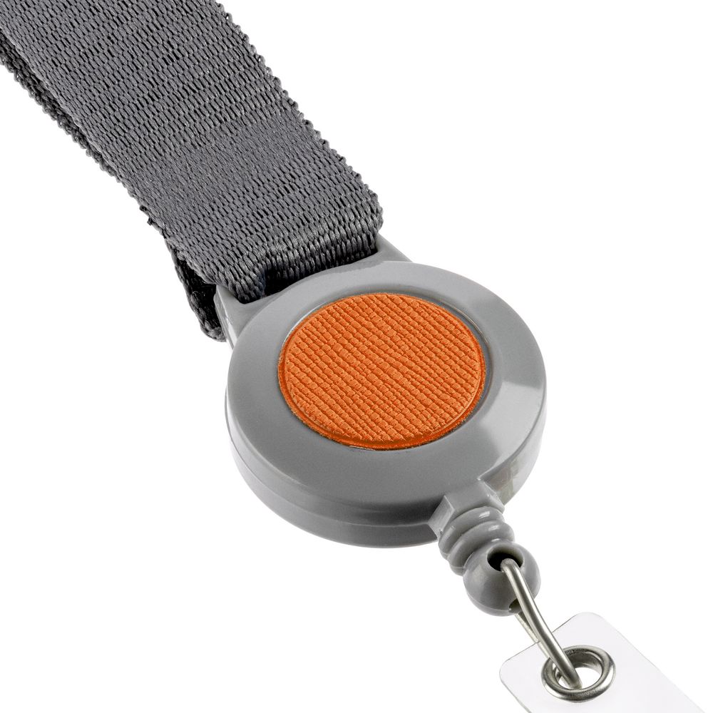 Чехол для пропуска из искусственного материала с пластиковым окошком, прикрепленный пластиковым клипом к ретрактору и ленте.