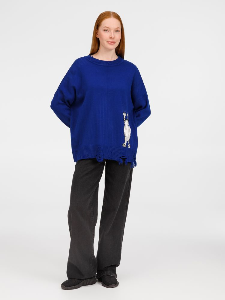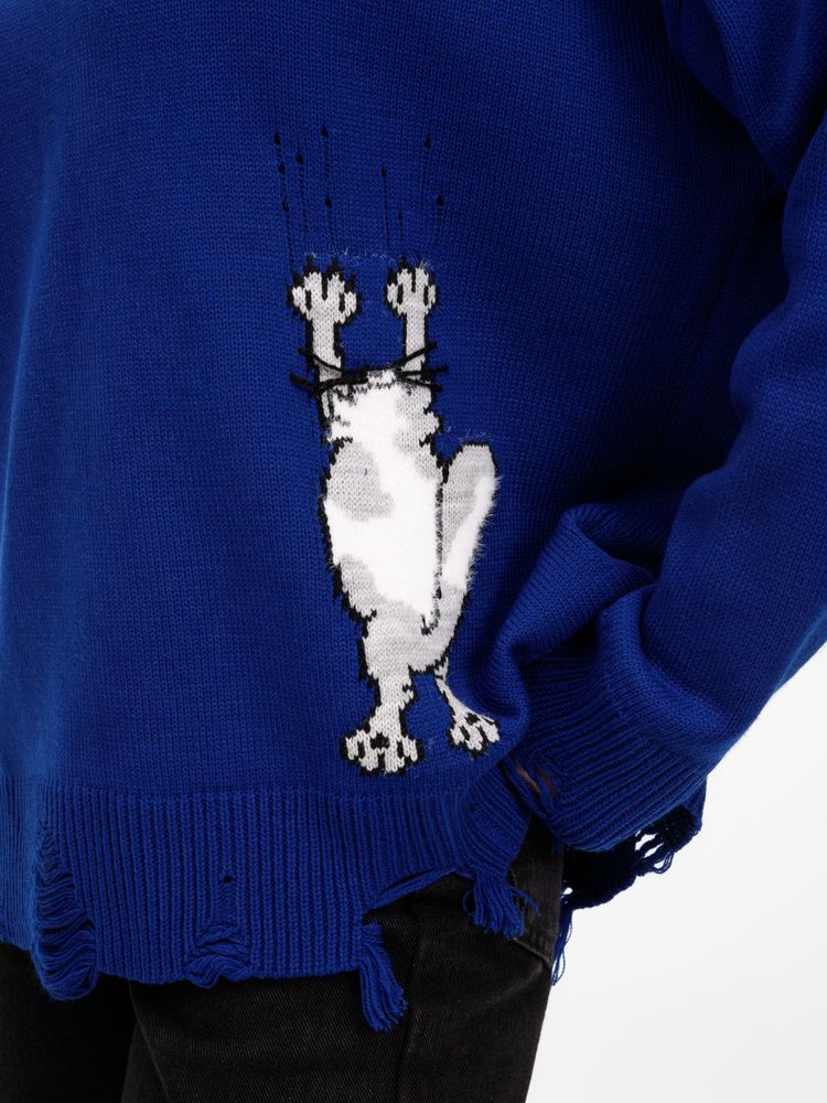 В дизайне мягкого джемпера с круглым вырезом Sharpick гранж-эстетика органично сочетается с милым акцентом — пушистым рисунком в виде озорного котика. Получается веселая вариация на тему того, откуда берется модная рваная одежда, а джемпер моментально создает настроение легкой несерьезности. Рваные края изделия добавляют современную нотку, а резинка на вороте, манжетах и по низу обеспечивает удобную посадку.