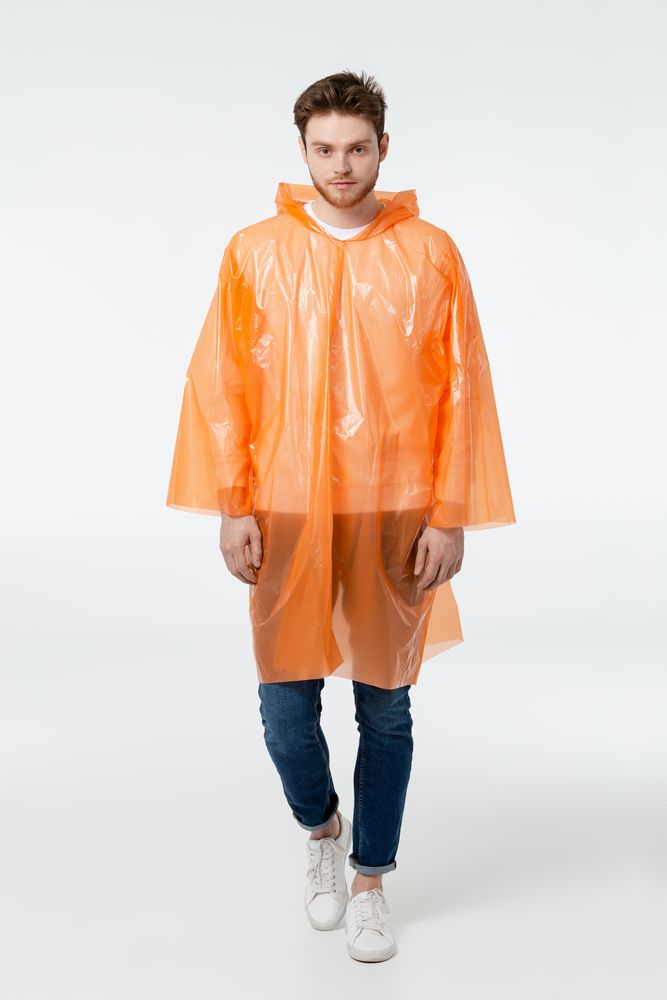 Дождевик-плащ с капюшоном и длинными рукавами из полиэтилена высокого давления (ПВД).