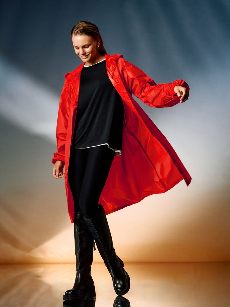 Дождевик Rainman может претендовать на звание любимой верхней одежды в дождливую погоду: на прогулке в городе или выезде на природу. Просторные размеры позволяют носить дождевик даже поверх куртки или прятать под ним сумку — и при любых обстоятельствах выглядеть элегантно. А еще его удобно брать с собой, ведь он легко складывается, занимая минимум места.