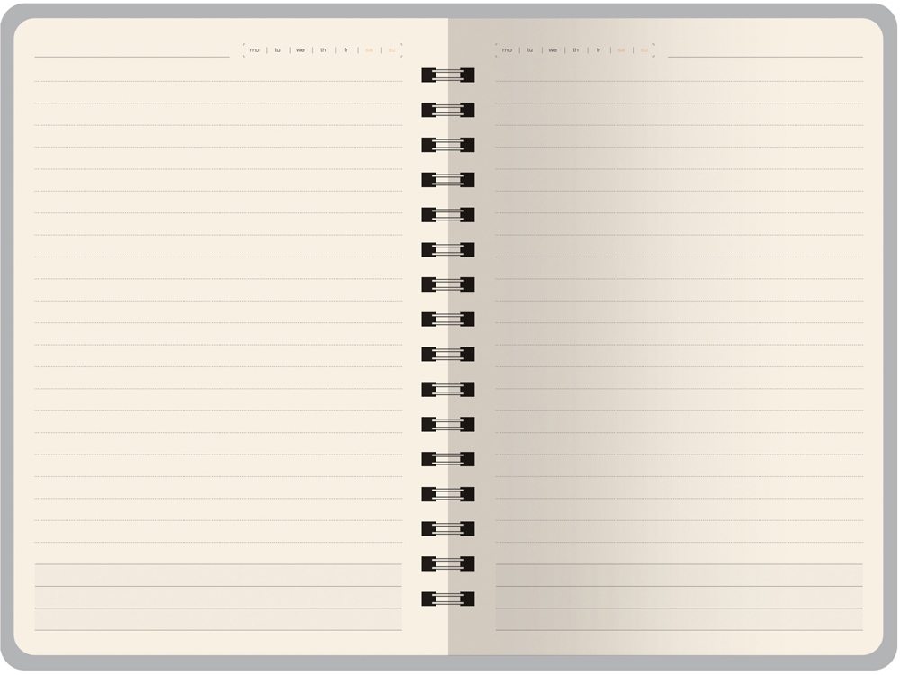 Недатированный ежедневник формата А5 «Tintoretto» ТМ Bruno Visconti — практичное решение для тех, кто любит ежедневники на «пружине». Полускрытый гребень позволяет держать ежедневник открытым на столе и комфортно вести записи. 272 страницы блока произведены из превосходной бежевой бумаги плотностью 70 г/кв.м, а неброская линовка каждой страницы позволяет не отвлекаться на лишние детали. Гибкую обложку из искусственной кожи украшает отстрочка декоративной нитью по краю.