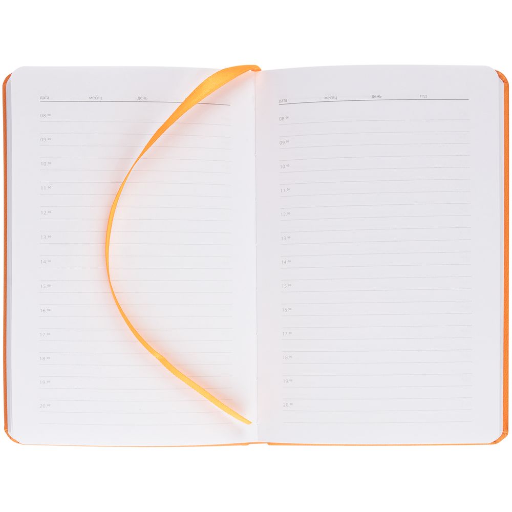 Ежедневник с твердой обложкой, выполнен из материала Latte, оранжевый ОО, дополнен  ляссе в цвет обложки.