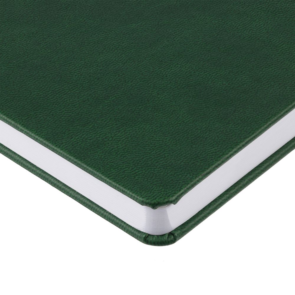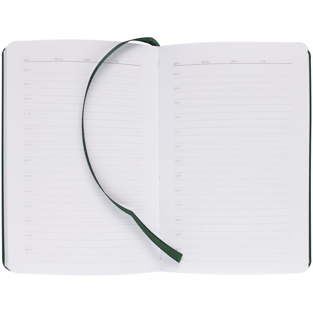 Ежедневник с твердой обложкой, выполнен из материала  Latte, зеленый FF, дополнен ляссе в цвет обложки.