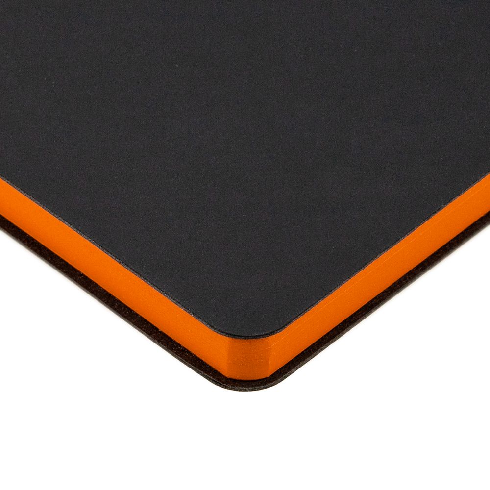 Ежедневник с гибкой обложкой, выполнен из материала Soft Touch, черный АА, дополнен петлей для ручки из материала Nice Touch, оранжевый ОО и цветным ляссе.