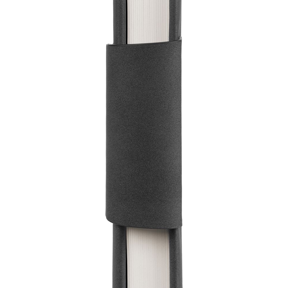 Ежедневник с твердой обложкой c поролоном, выполнен из материала Nubuck, темно-серый ЕЕ, дополнен капталом и ляссе черного цвета. Застежка — магнитный хлястик.