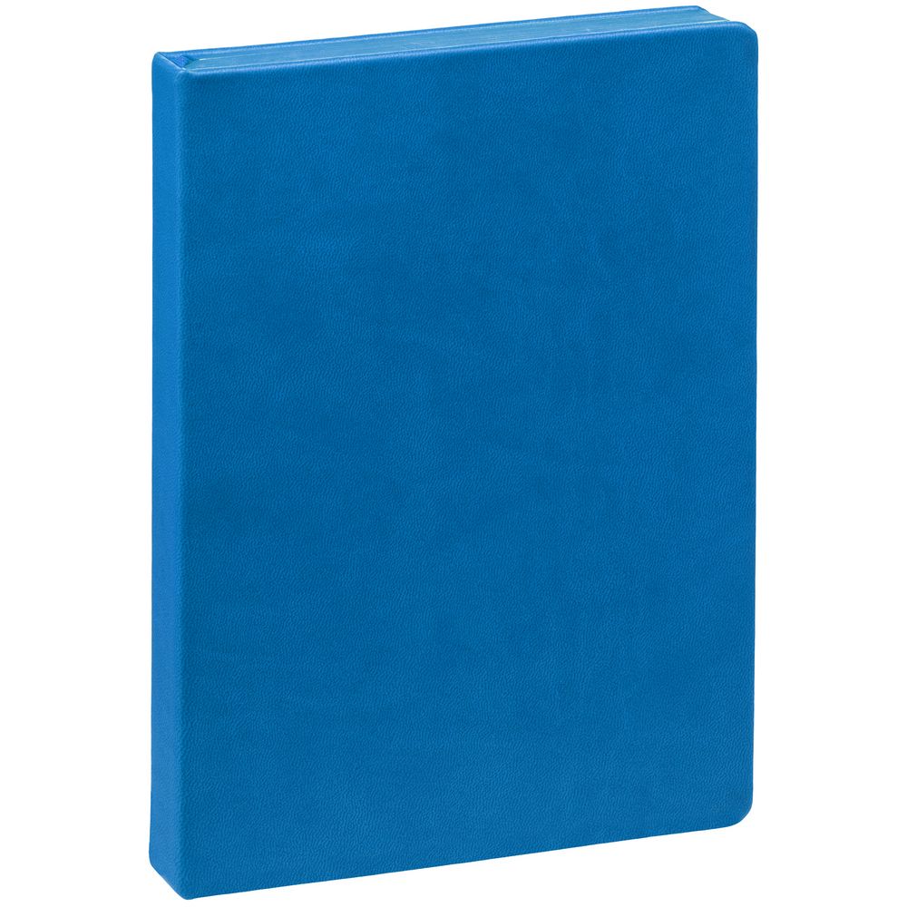 Ежедневник с твердой обложкой и тонированным обрезом. Выполнен из материала Latte, ярко-синий, дополнен ляссе в цвет обложки.