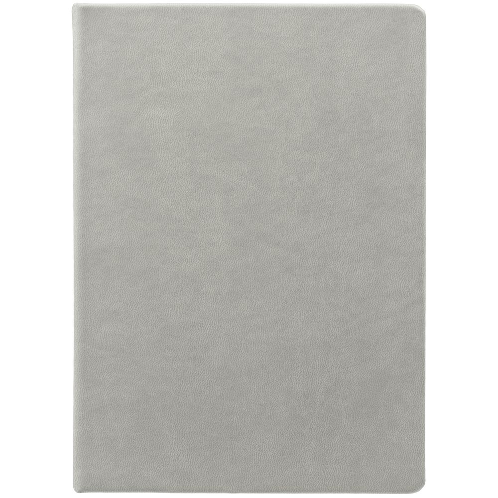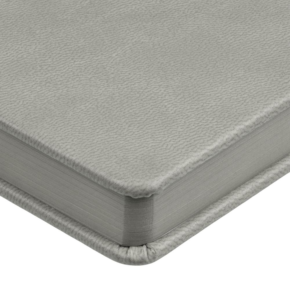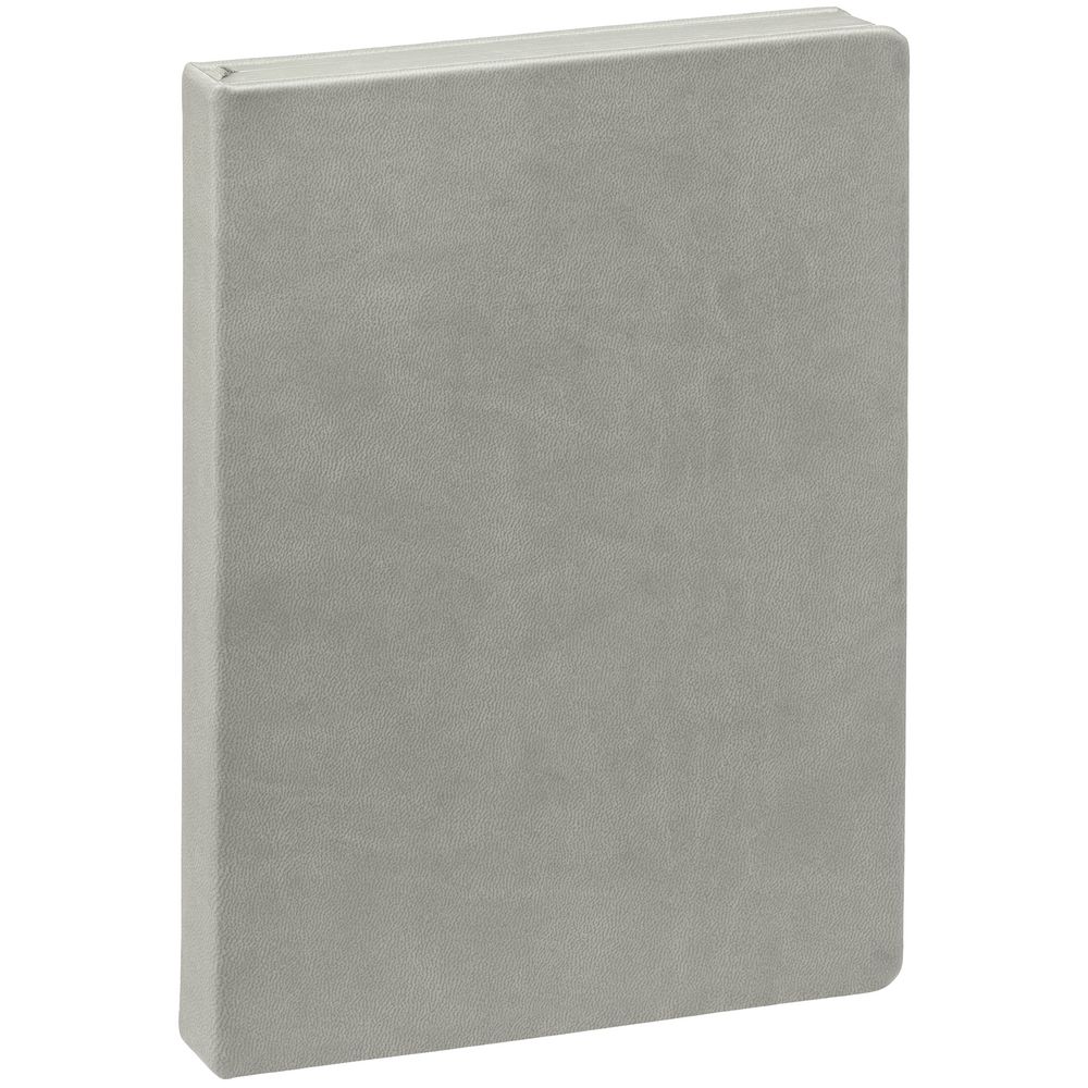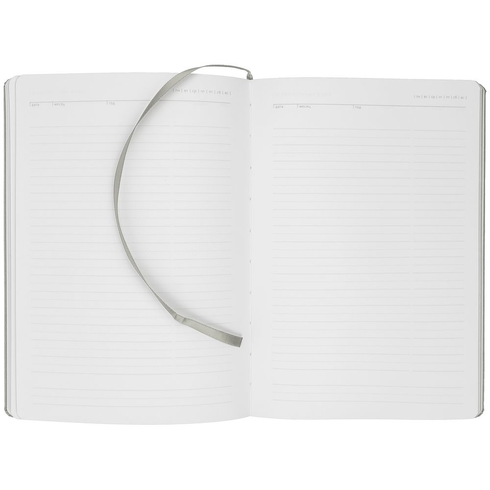 Ежедневник с твердой обложкой и тонированным обрезом. Выполнен из материала Latte, серый, дополнен ляссе в цвет обложки.