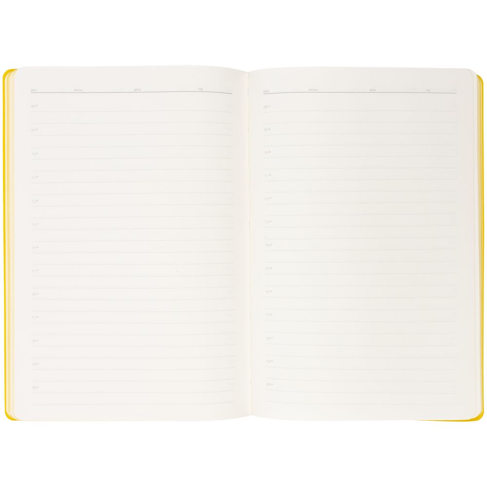 Гибкая обложка ежедневника выполнена из материала Soft Touch Pearl, черный АА и цветного Latte (внутренняя часть обложки).