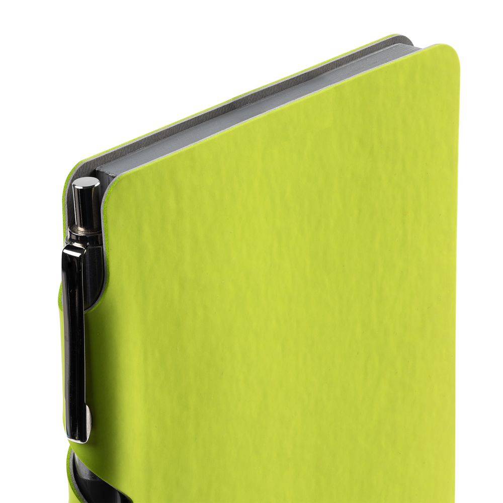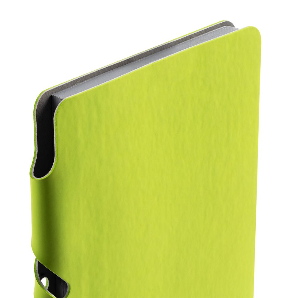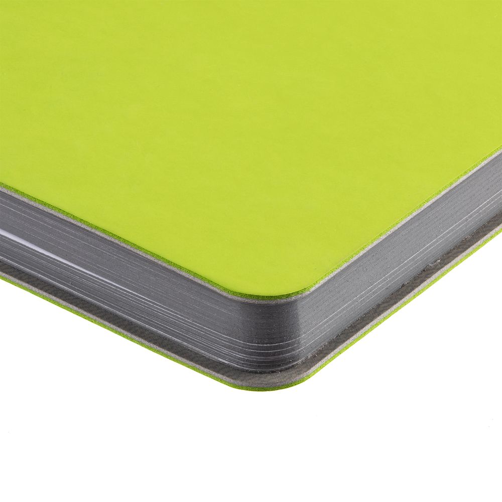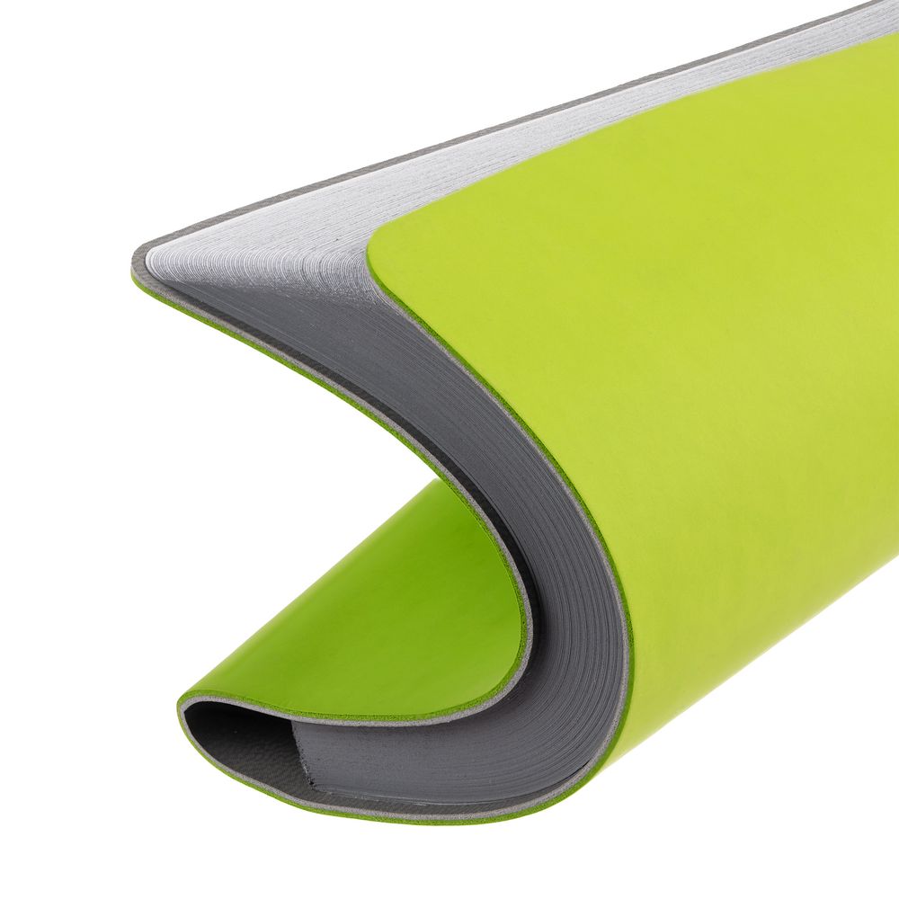 Ежедневник с гибкой обложкой выполнен из материала Soft Touch, светло-зеленый YY и серого Latte (внутренняя часть обложки).