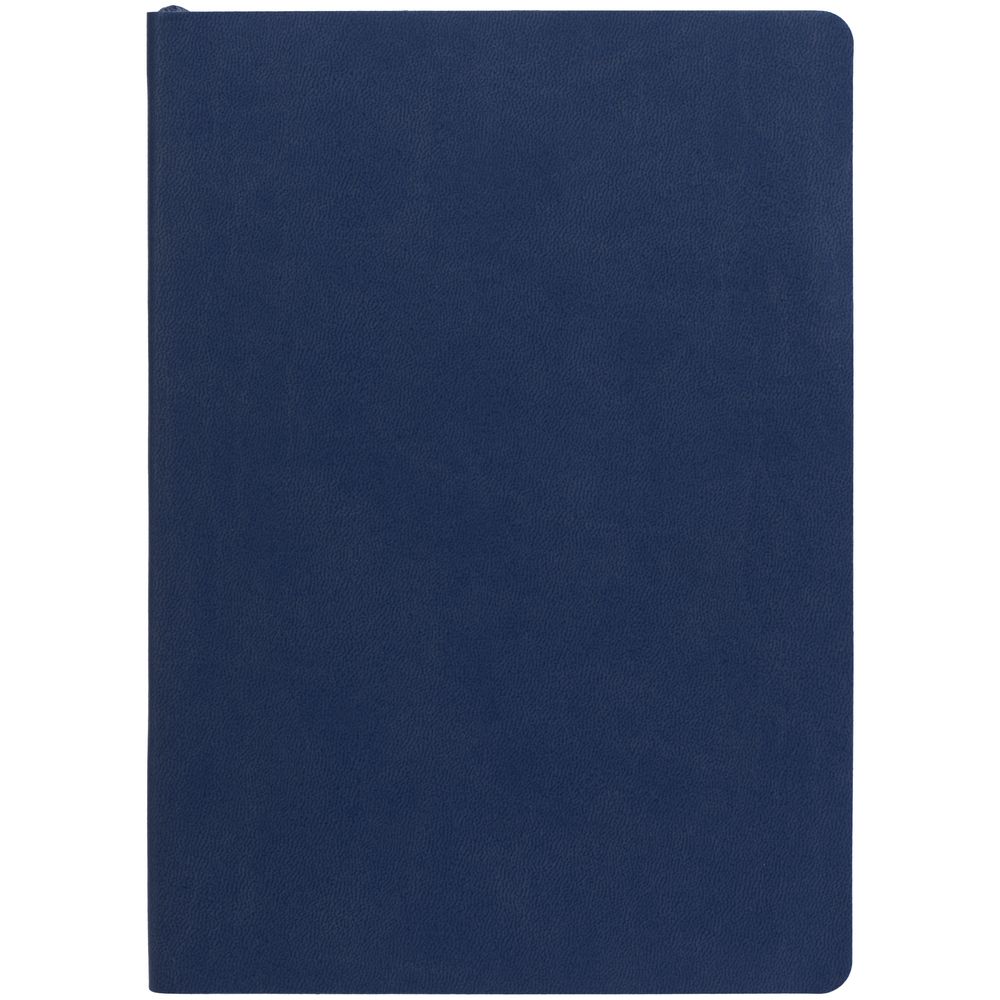 Ежедневник с гибкой обложкой, выполнен из материала Latte, темно-синий, дополнен ляссе в цвет обложки.