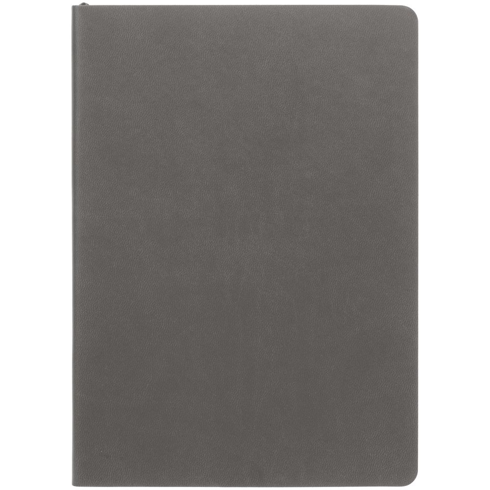 Ежедневник с гибкой обложкой, выполнен из материала Latte, серый, дополнен ляссе в цвет обложки.