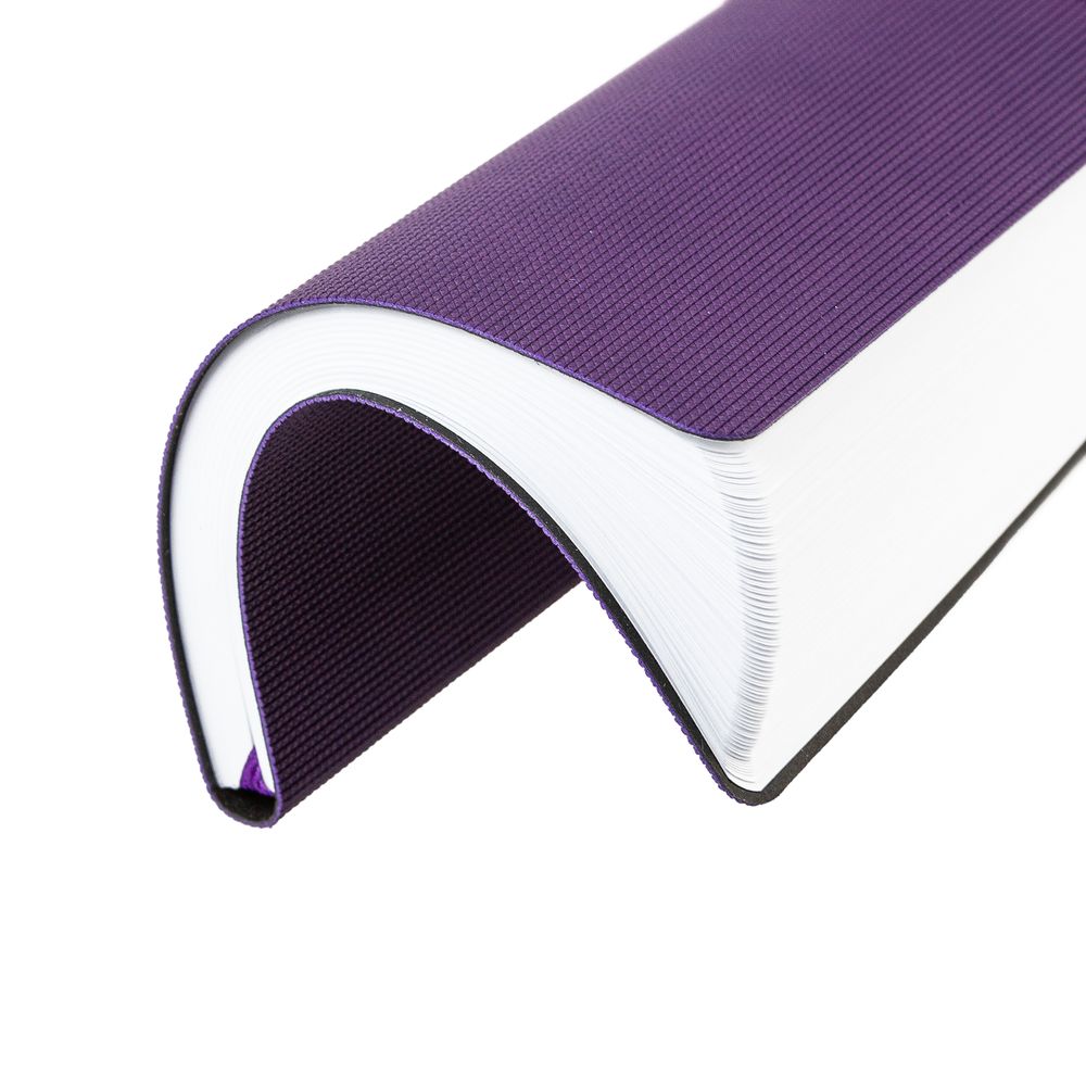 Ежедневник с гибкой обложкой, выполнен из материала Canyon, фиолетовый UU, дополнен ляссе в цвет обложки. Блинтовое тиснение на обложке создает эффект вязаного полотна.