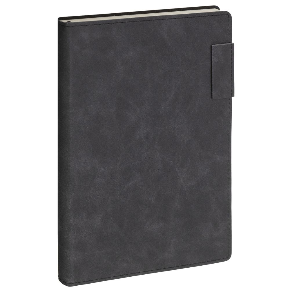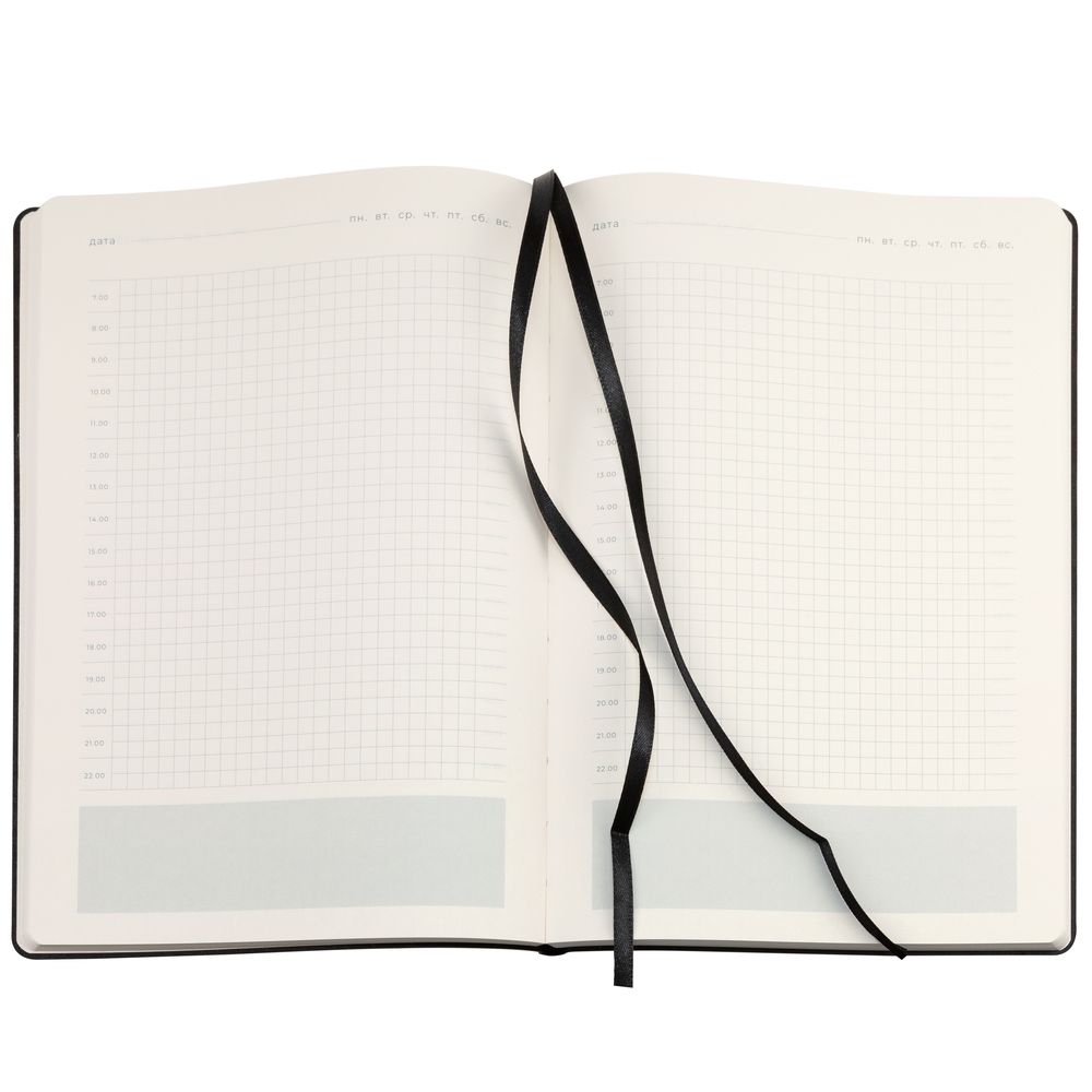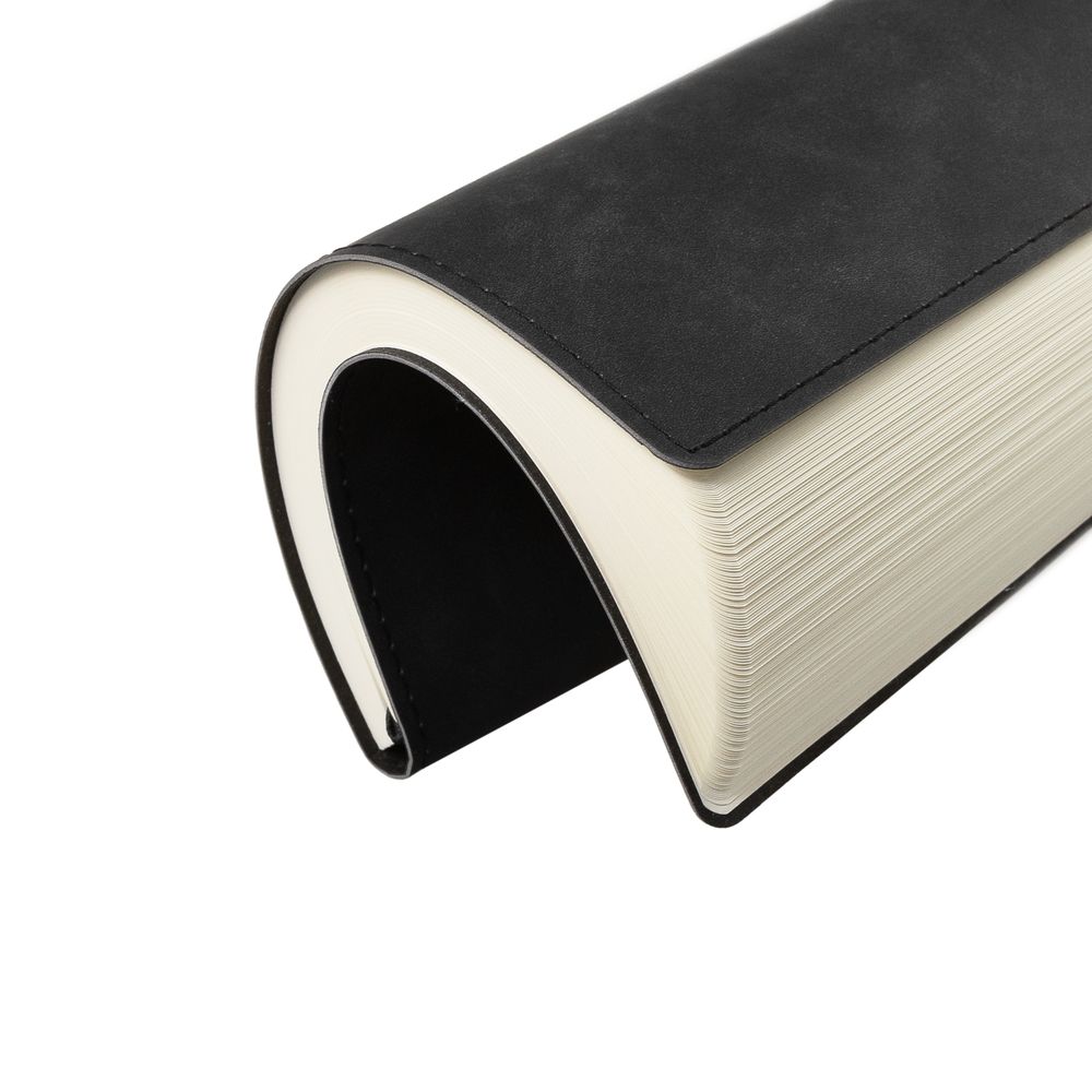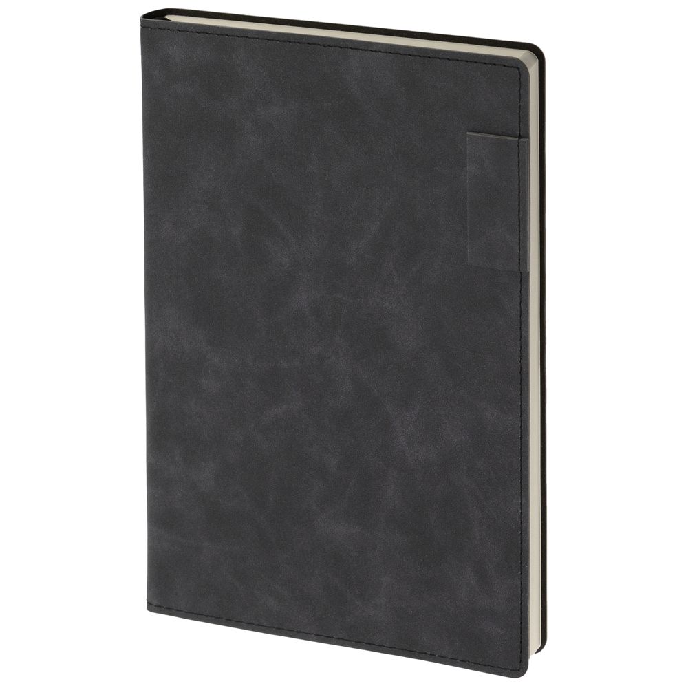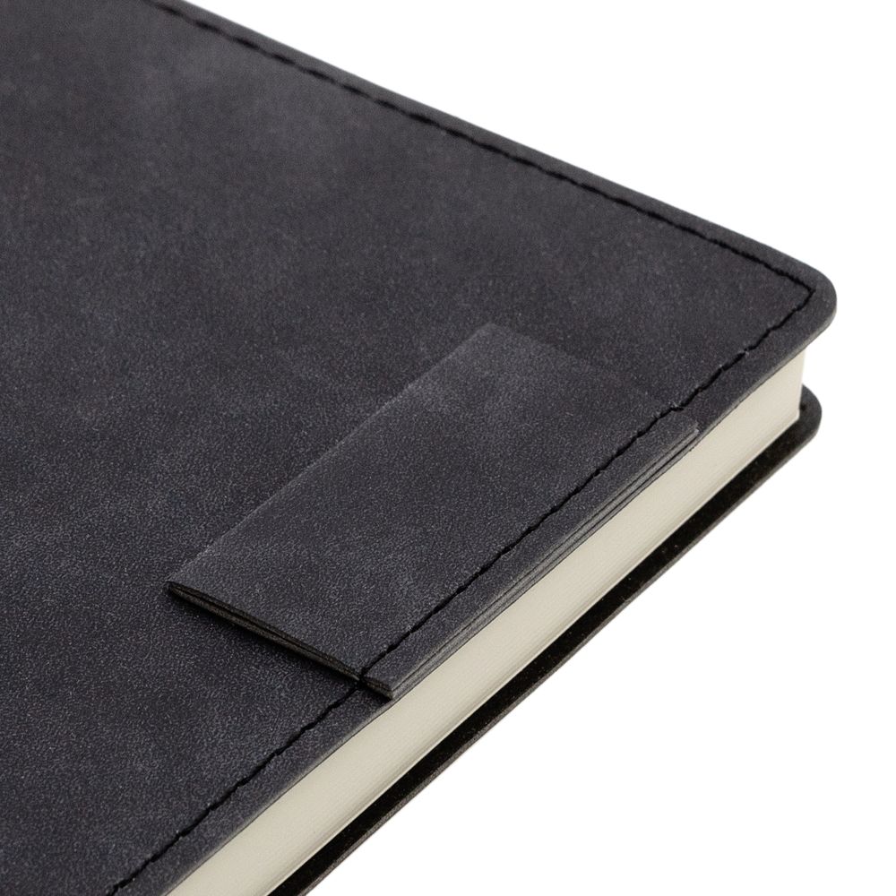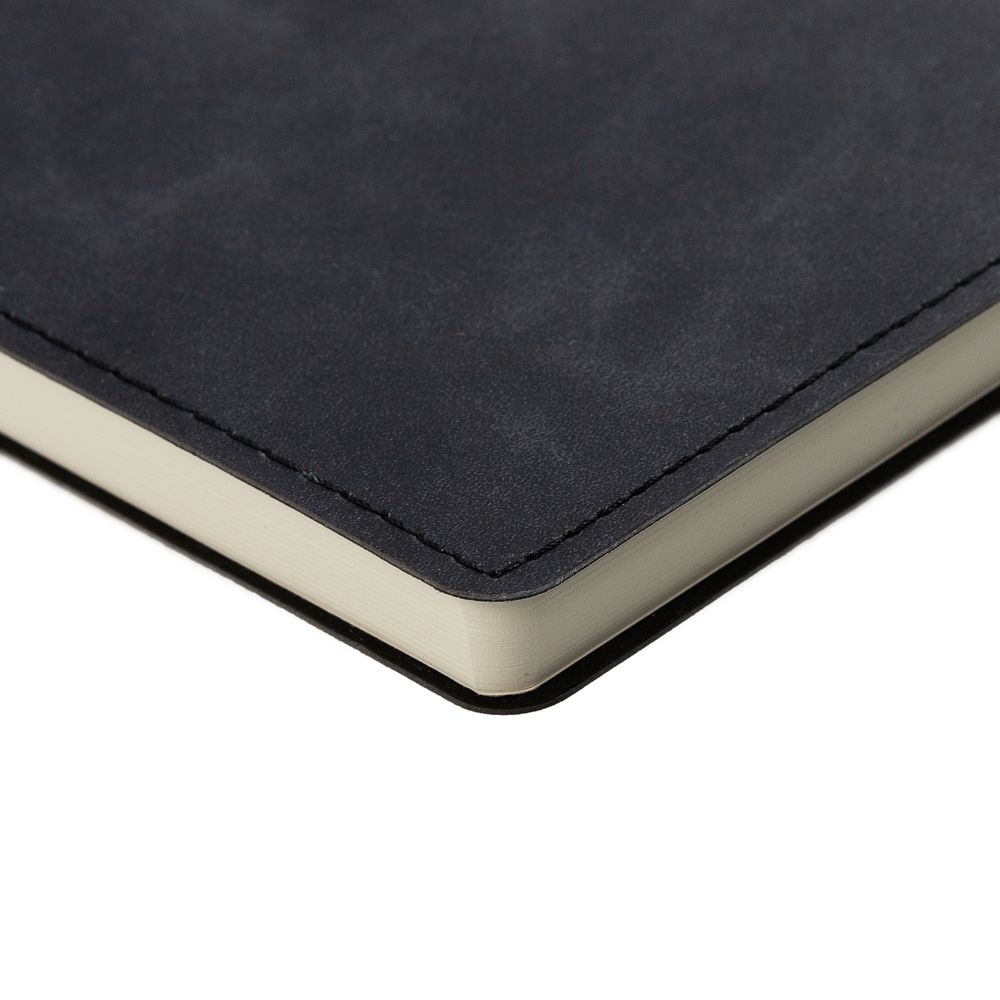 Ежедневник  17х24 см, с гибкой обложкой, выполнен из материала Nubuck Touch, черный АА, дополнен петлей-лейблом для ручки и двойным ляссе в цвет материала.