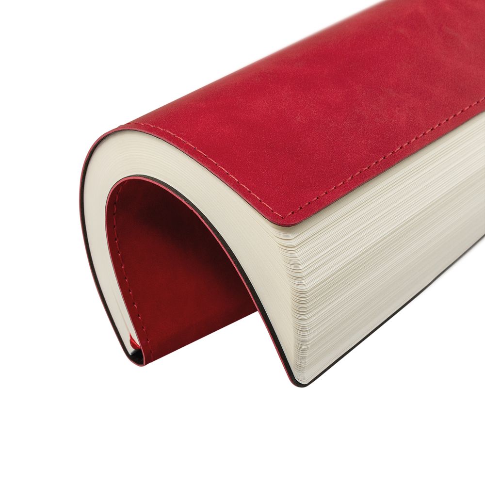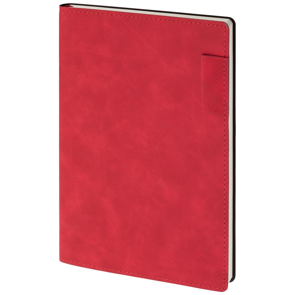 Ежедневник 17х24 см, с гибкой обложкой, выполнен из материала Nubuck Touch, красный РР, дополнен петлей-лейблом для ручки и двойным ляссе в цвет материала.