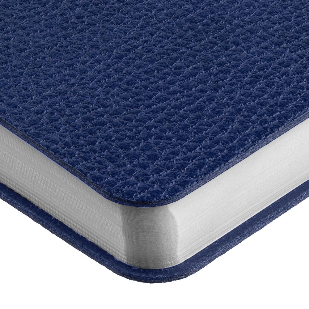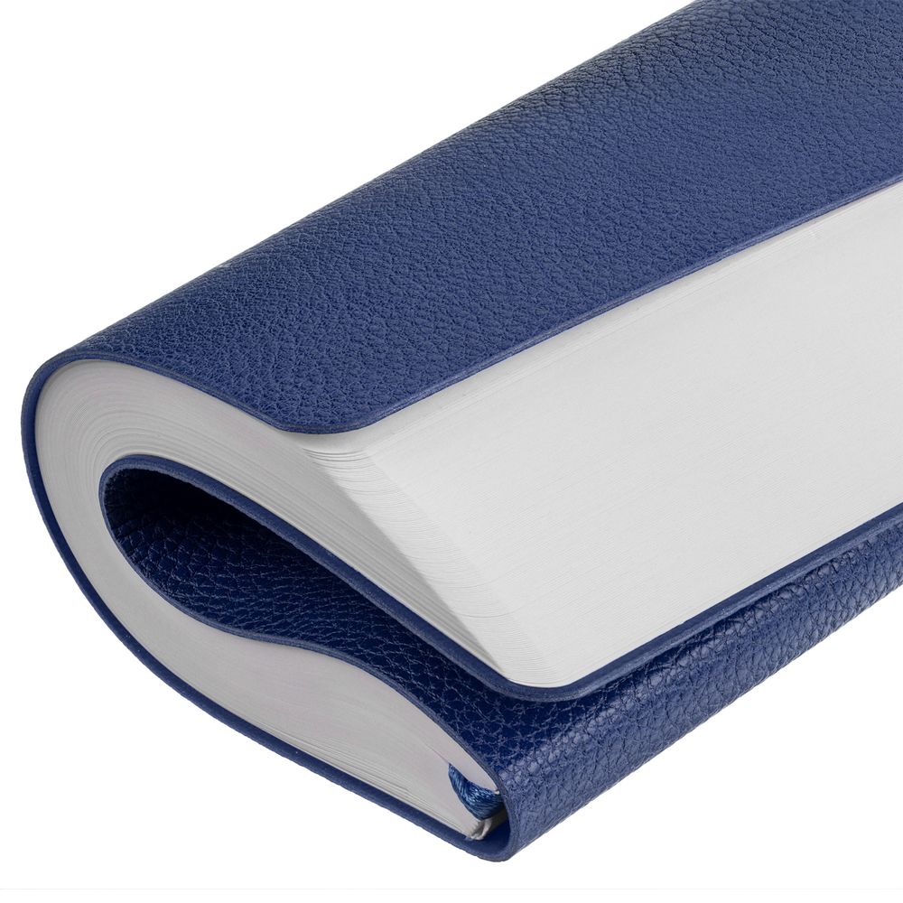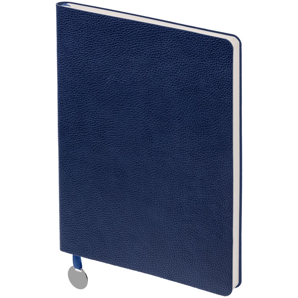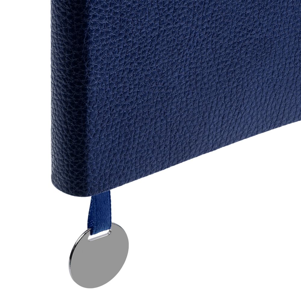 Ежедневник с гибкой обложкой, выполнен из материал La Fite, синий НН, дополнен ляссе в цвет обложки с металлическим шильдом.