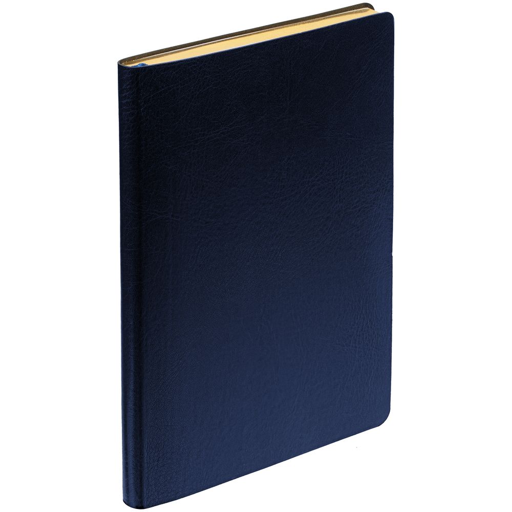 Ежедневник с гибкой обложкой, выполнен из материала Nebraska, темно-синий ХХ, дополнен ляссе темно-синего цвета.