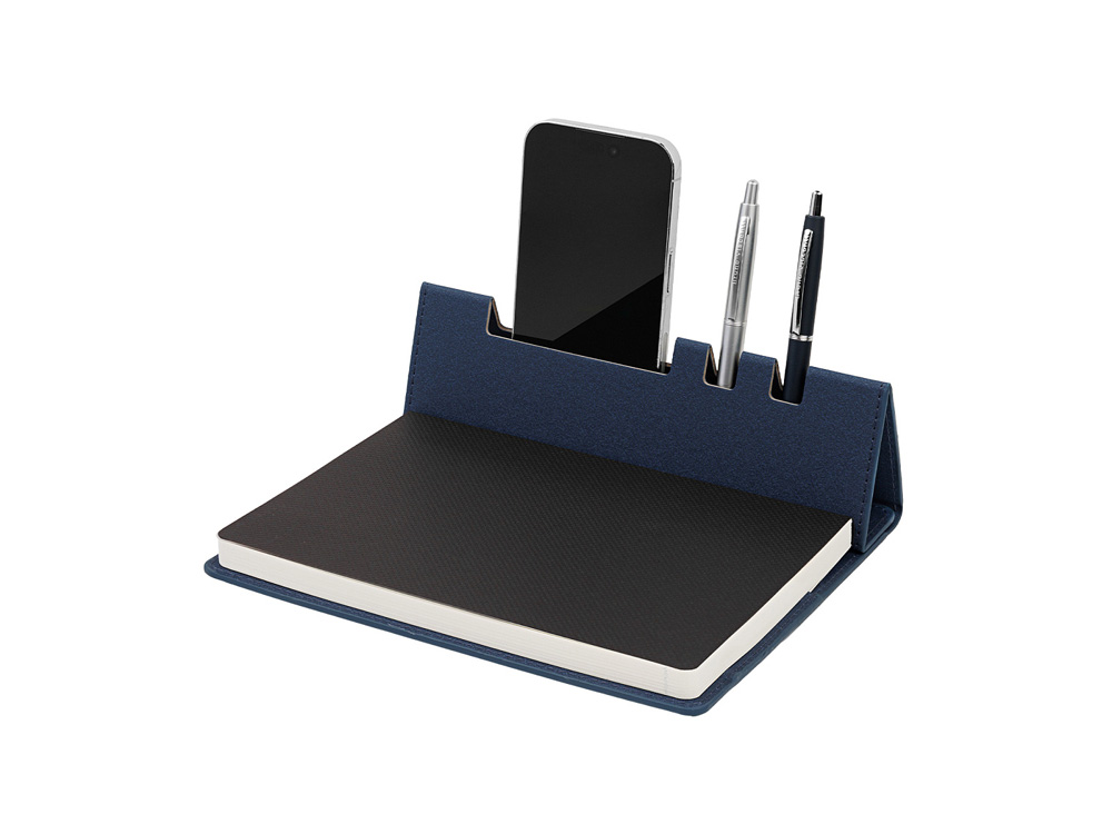 Мягкая линия сгиба в центре обложки позволяет использовать ежедневник в качестве подставки под пишущие принадлежности и мобильный телефон.