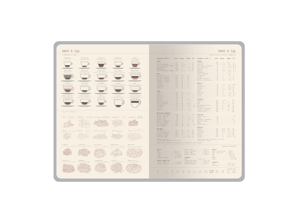 Сам блок выполнен из бежевой офсетной бумаги плотностью 70 г/кв.м и состоит 256 страниц, 14 из которых содержат полезную и интересную справочную информацию.