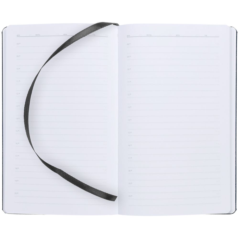 Ежедневник с твердой обложкой, выполнен из материала LaFite, черный АА, дополнен резинкой и ляссе в цвет обложки.