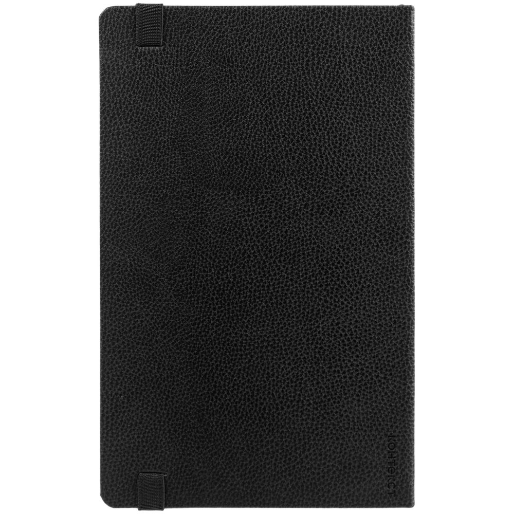 Ежедневник с твердой обложкой, выполнен из материала LaFite, черный АА, дополнен резинкой с металлическим прямоугольным шильдом и ляссе в цвет обложки.