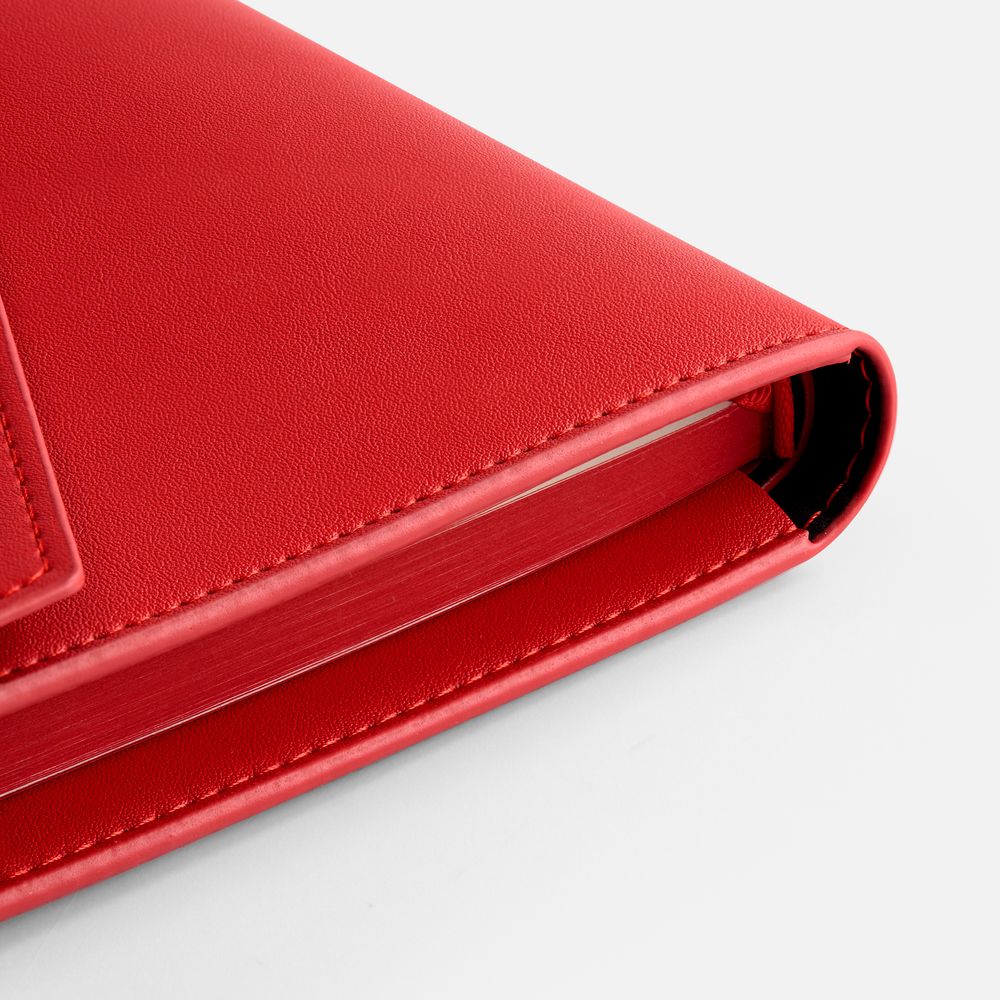 Ежедневник-органайзер в мягком переплете, формат А5+, с карманами для визиток и документов, петлей для ручки. Дополнен ляссе и капталом в цвет обложки. Клапан с прорезями застегивается на кобурные металлические кнопки.