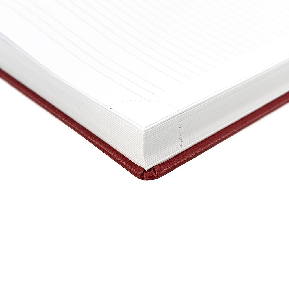 Ежедневник в твердой обложке c поролоном, выполнен из материала La Fite, красный РР, дополнен ляссе белого цвета.