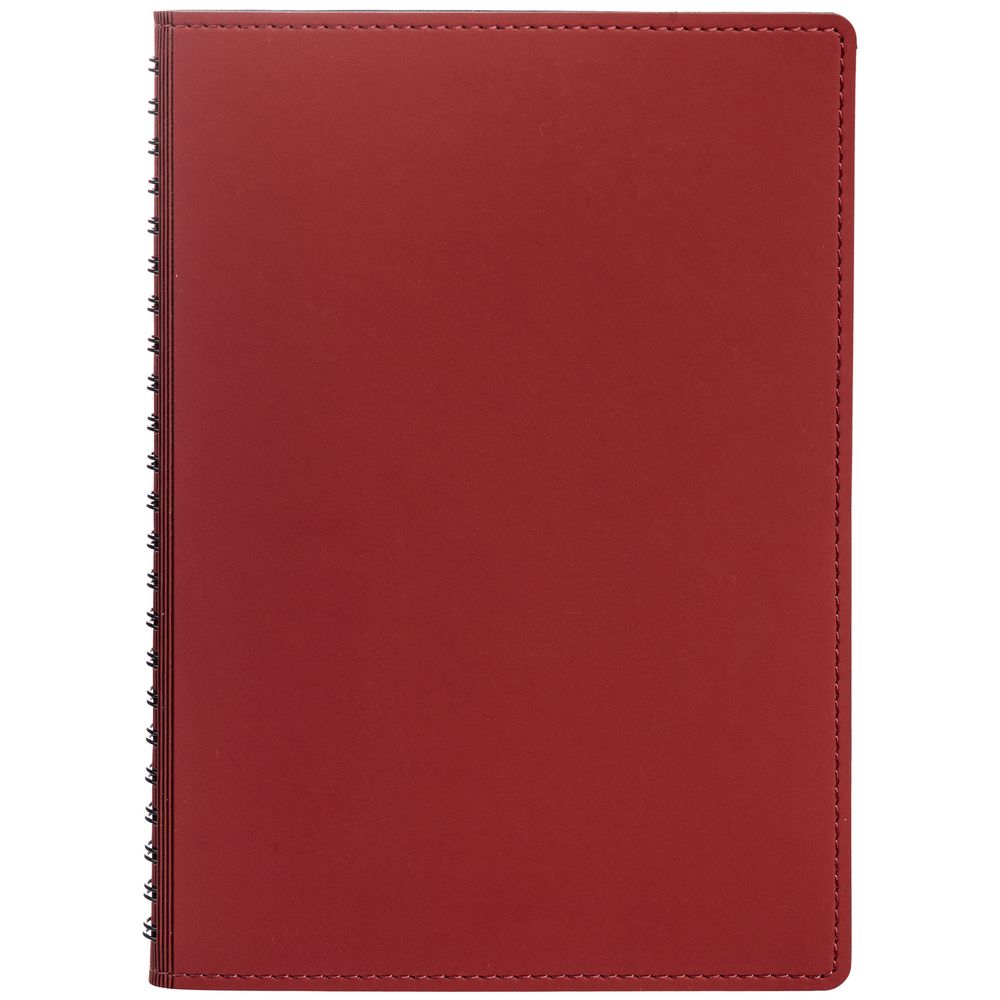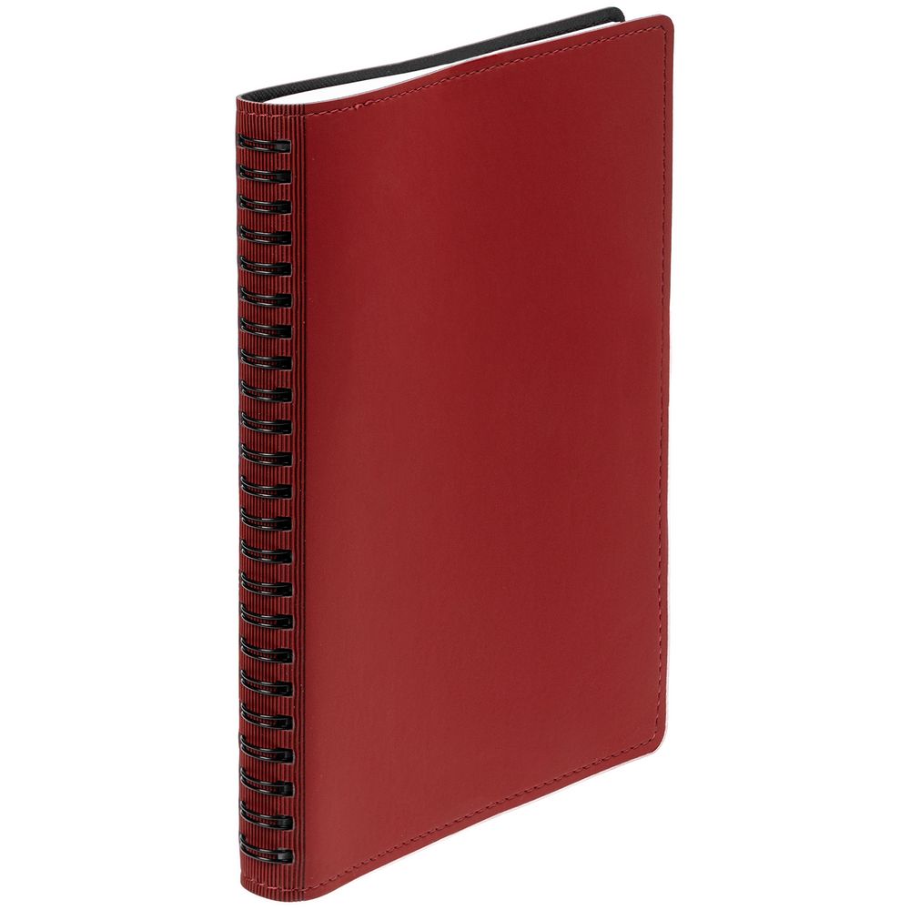 Ежедневник с гибкой обложкой, выполнен из материалов Soft Touch, красный РР и Nice Touch, черный АА.