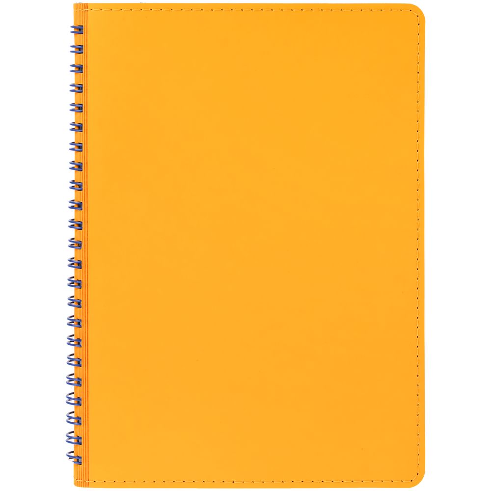 Ежедневник с гибкой обложкой, выполнен из материалов Soft Touch, желтый КК и Nice Touch, темно-синий ХХ.