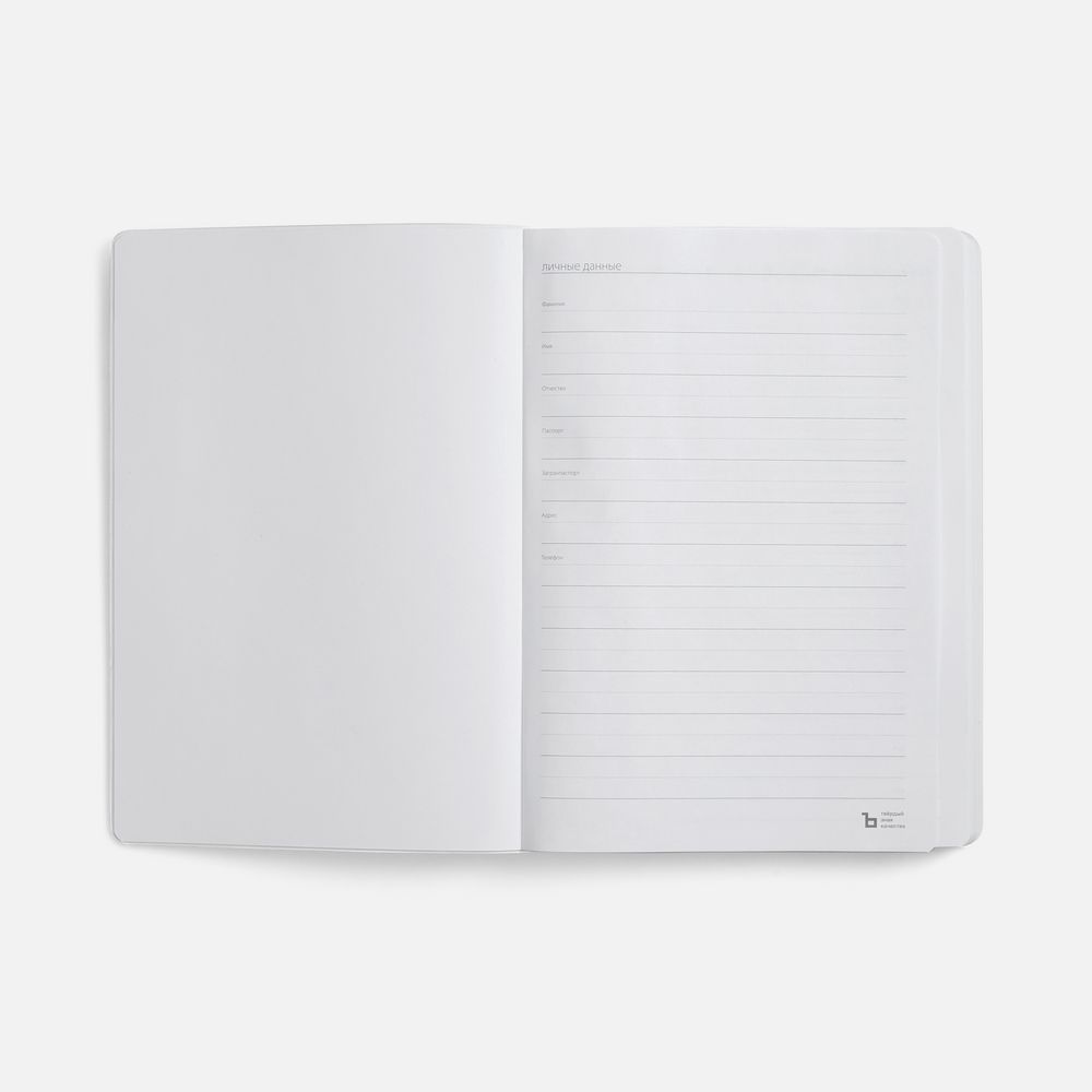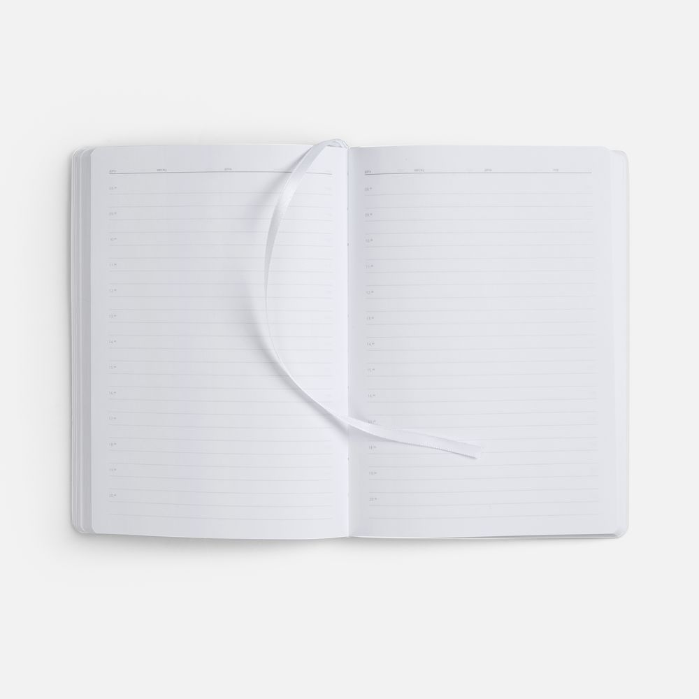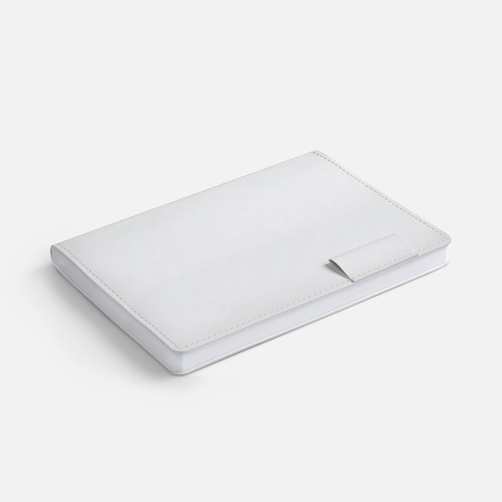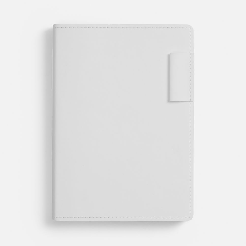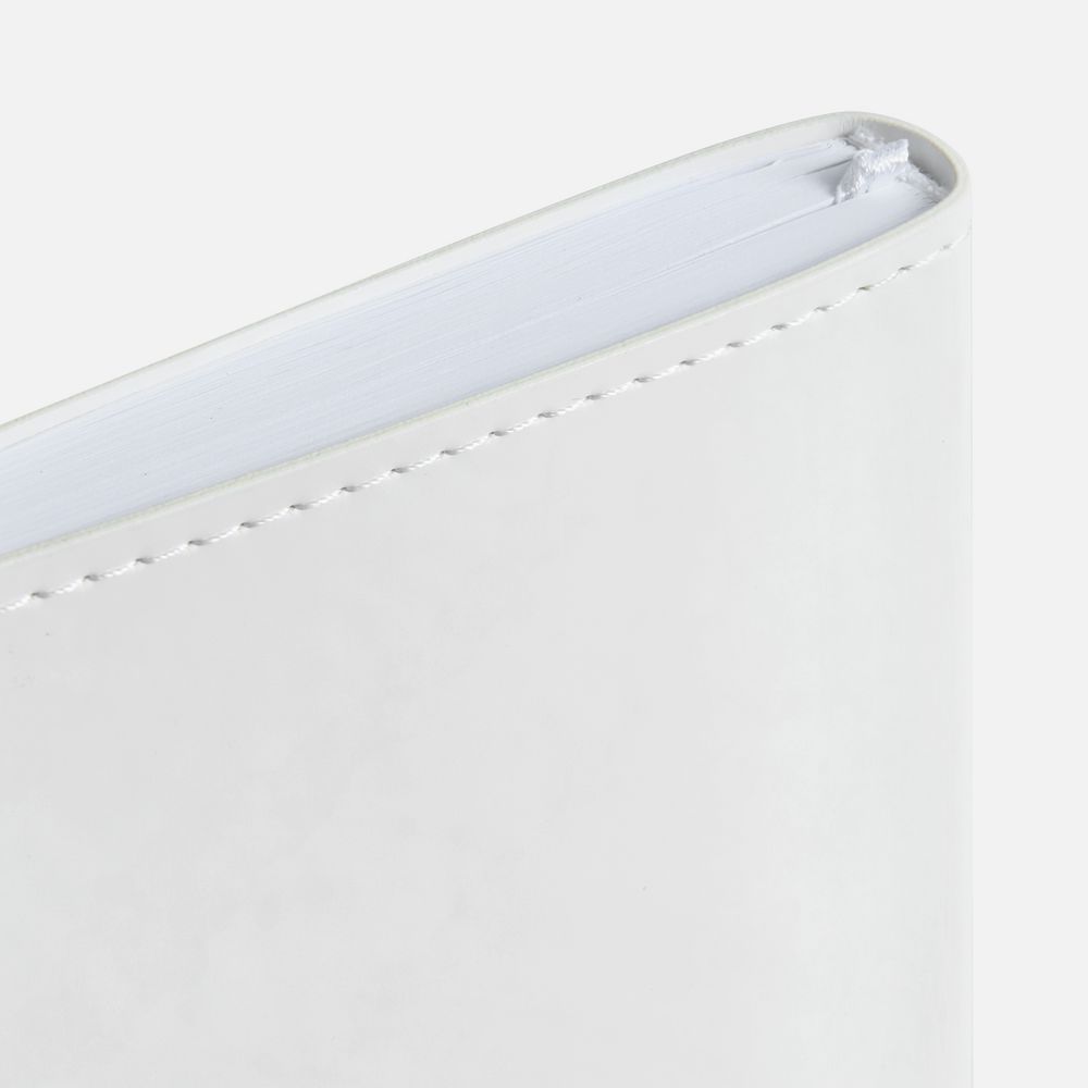 Ежедневник с гибкой обложкой из материала Soft Touch, белый BB, дополнен петелькой из покровного материала для ручки, капталом, ляссе и закрашенным срезом обложки в цвет материала.