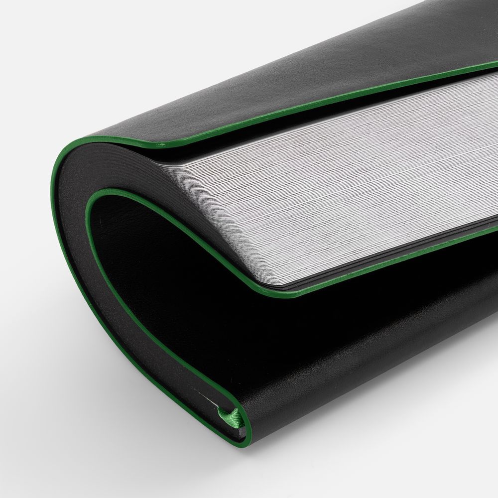 Обложка ежедневника Trait — это максимальная концентрация черного, подчеркнутая яркой полосой цветного среза.