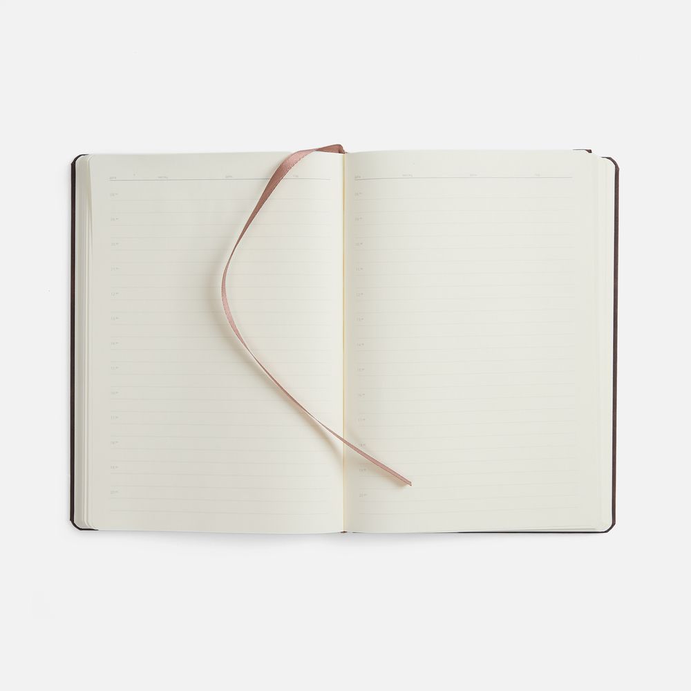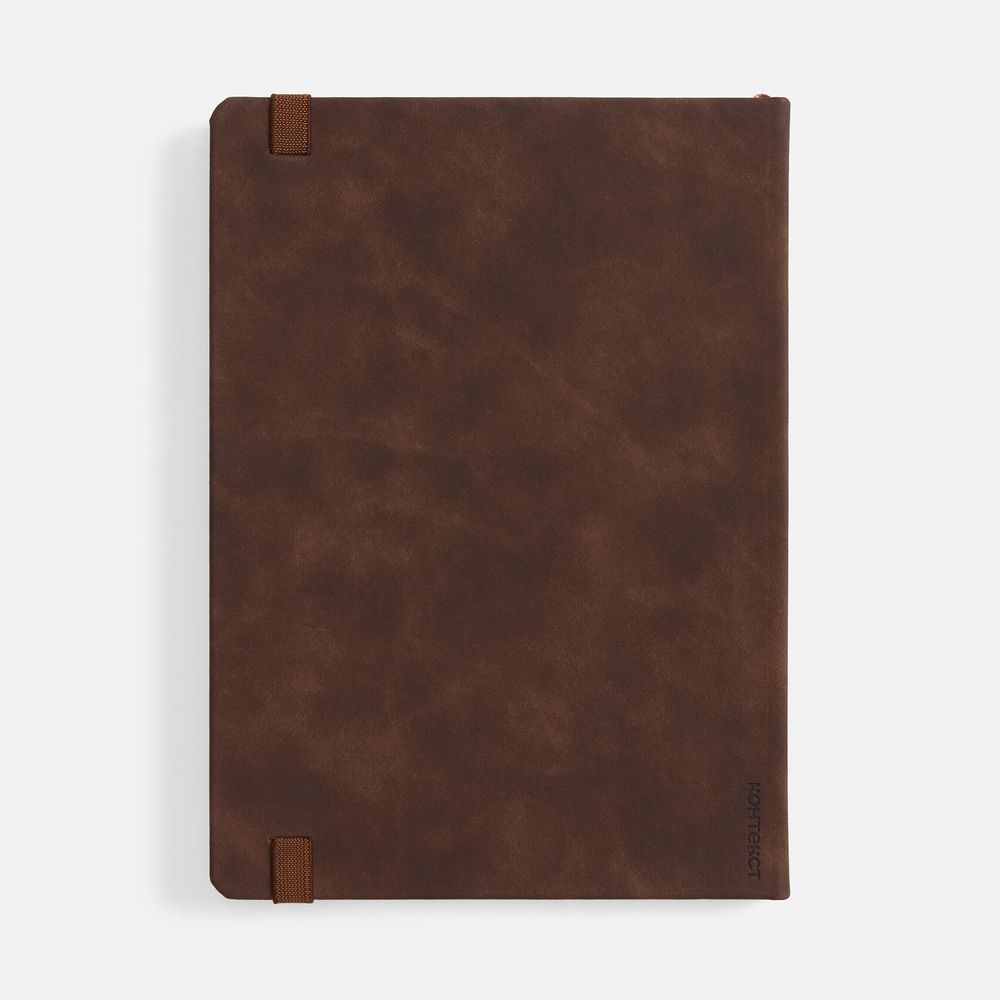 Ежедневник с твердой обложкой, выполнен из материала Nubuck Touch, темно-коричневый ZZ, дополнен ляссе темно-коричневого цвета.