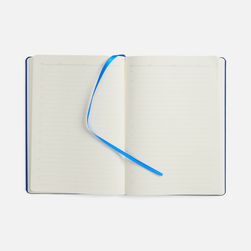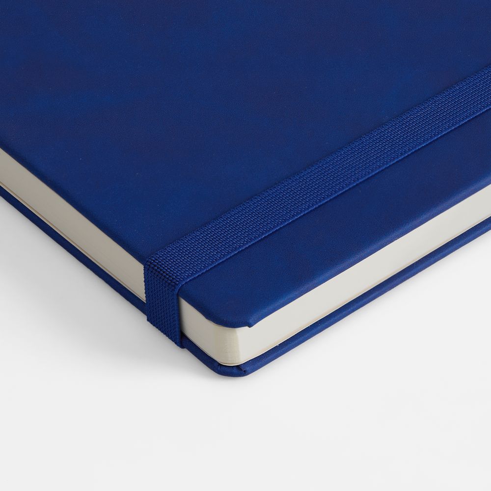 Ежедневник с твердой обложкой, выполнен из материала Nubuck Touch, темно-синий ХХ, дополнен ляссе темно-синего цвета.